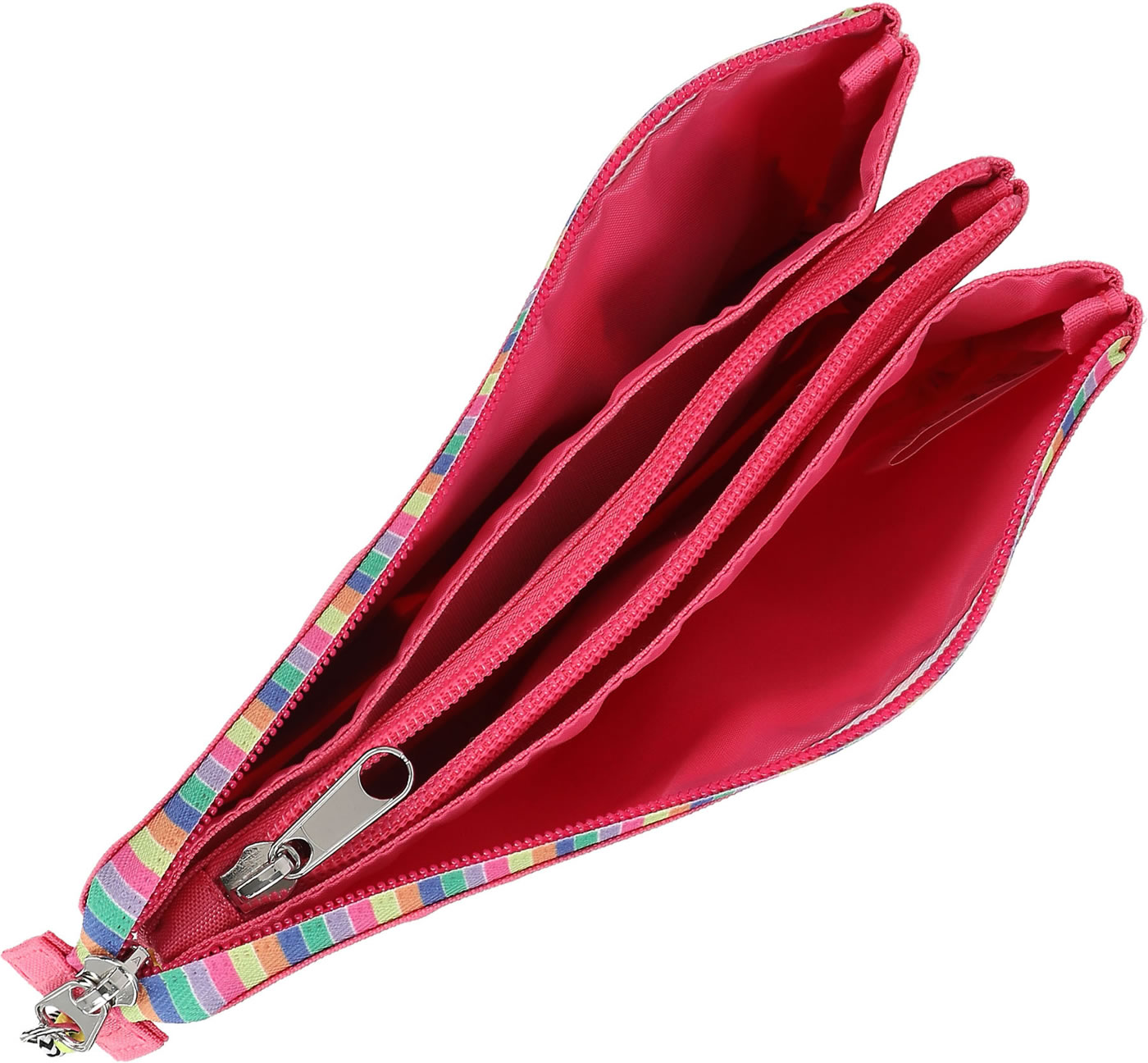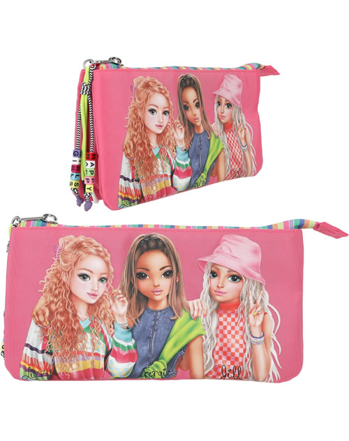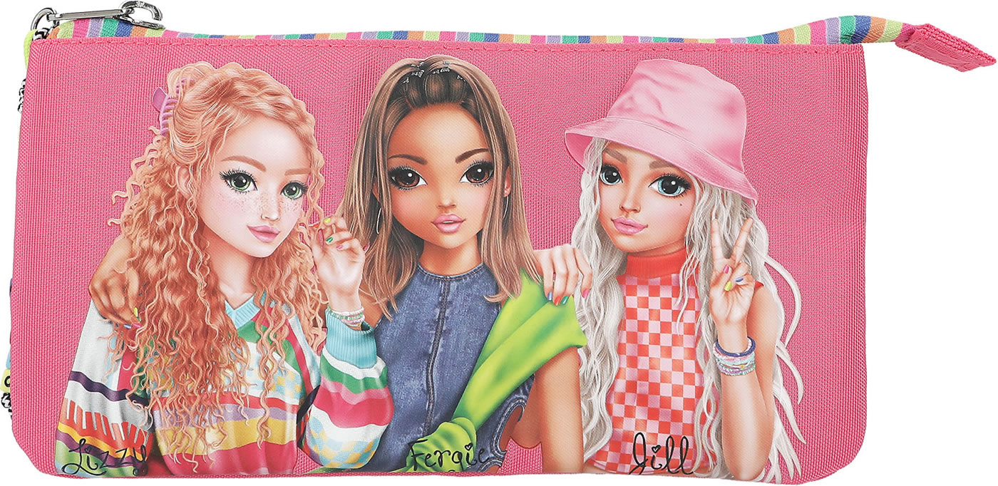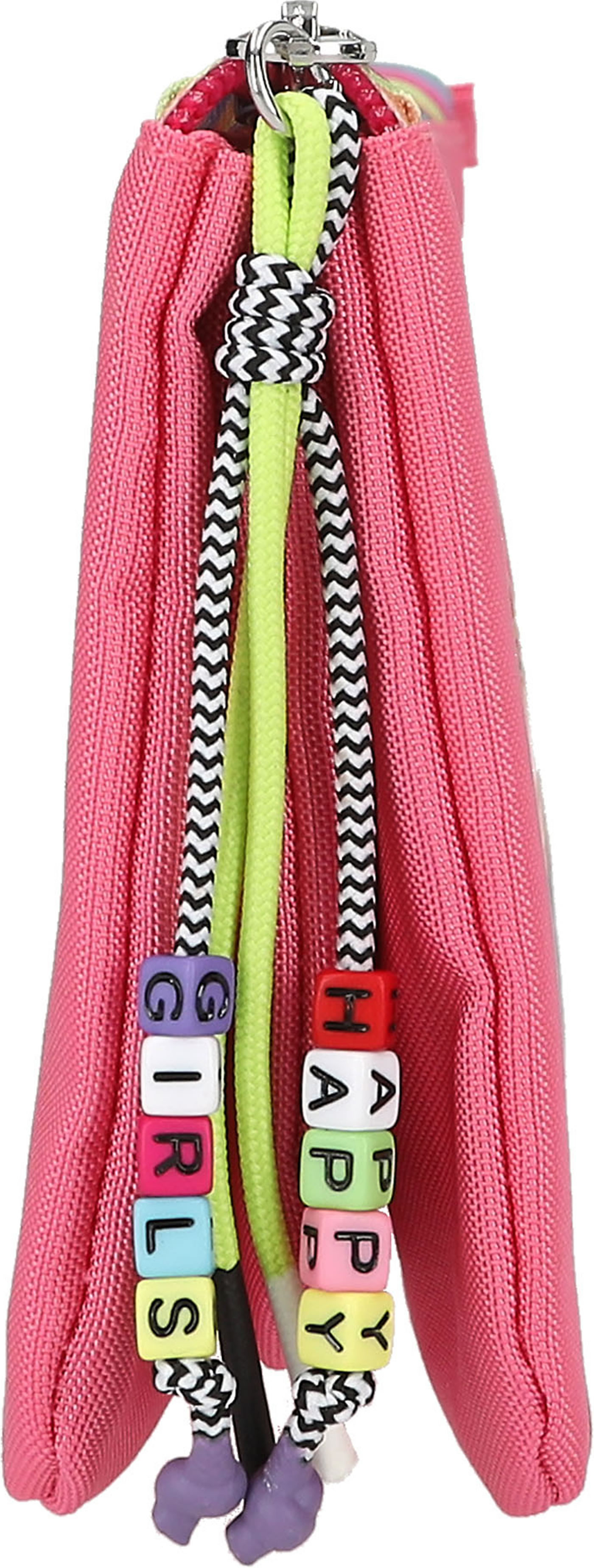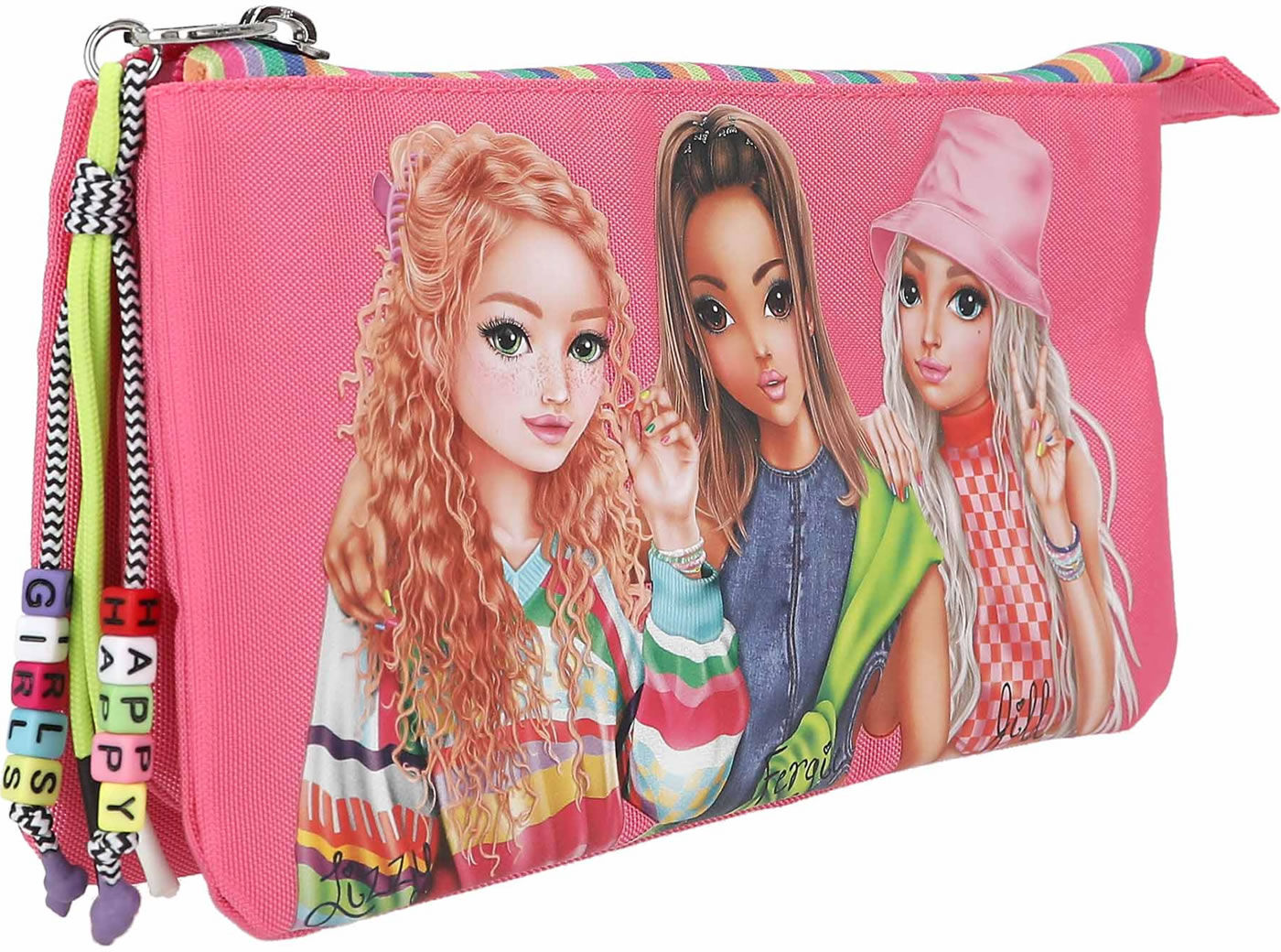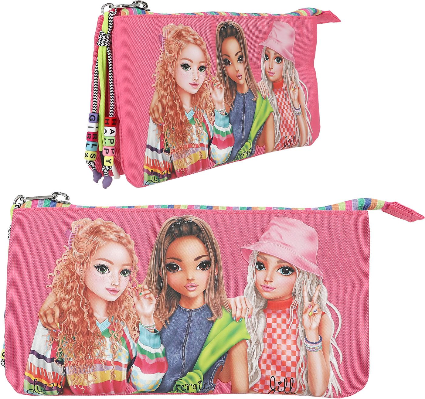 Farbenfroh macht happy: Die pinke Fächer-Schlampertasche JOY von TOPModel hat auf der Front ein tolles Motiv mit drei Models, einen kunterbunten Reißverschluss und einen supercoolen Reißverschluss-Anfasser aus angesagten Bändern und Buchstaben-Perlen (HAPPY GIRLS). Mit drei separaten Fächern.