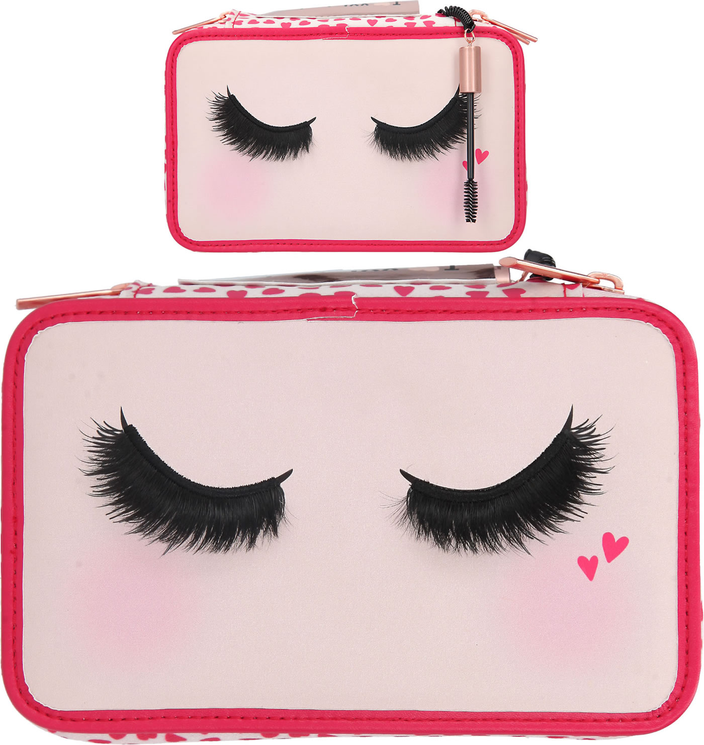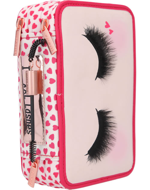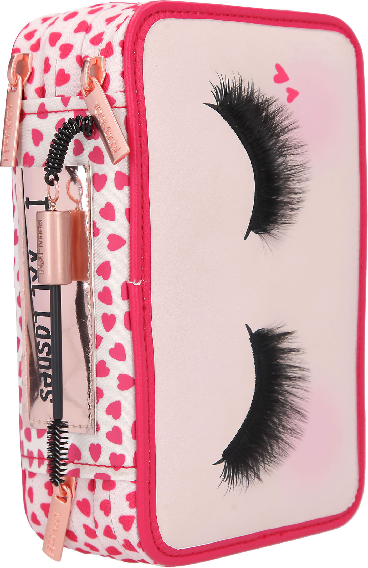 Ein besonderes Detail sind die Augen mit Wimpern auf der Federtasche. Und eine Mascara Bürste ist auch mit dabei.