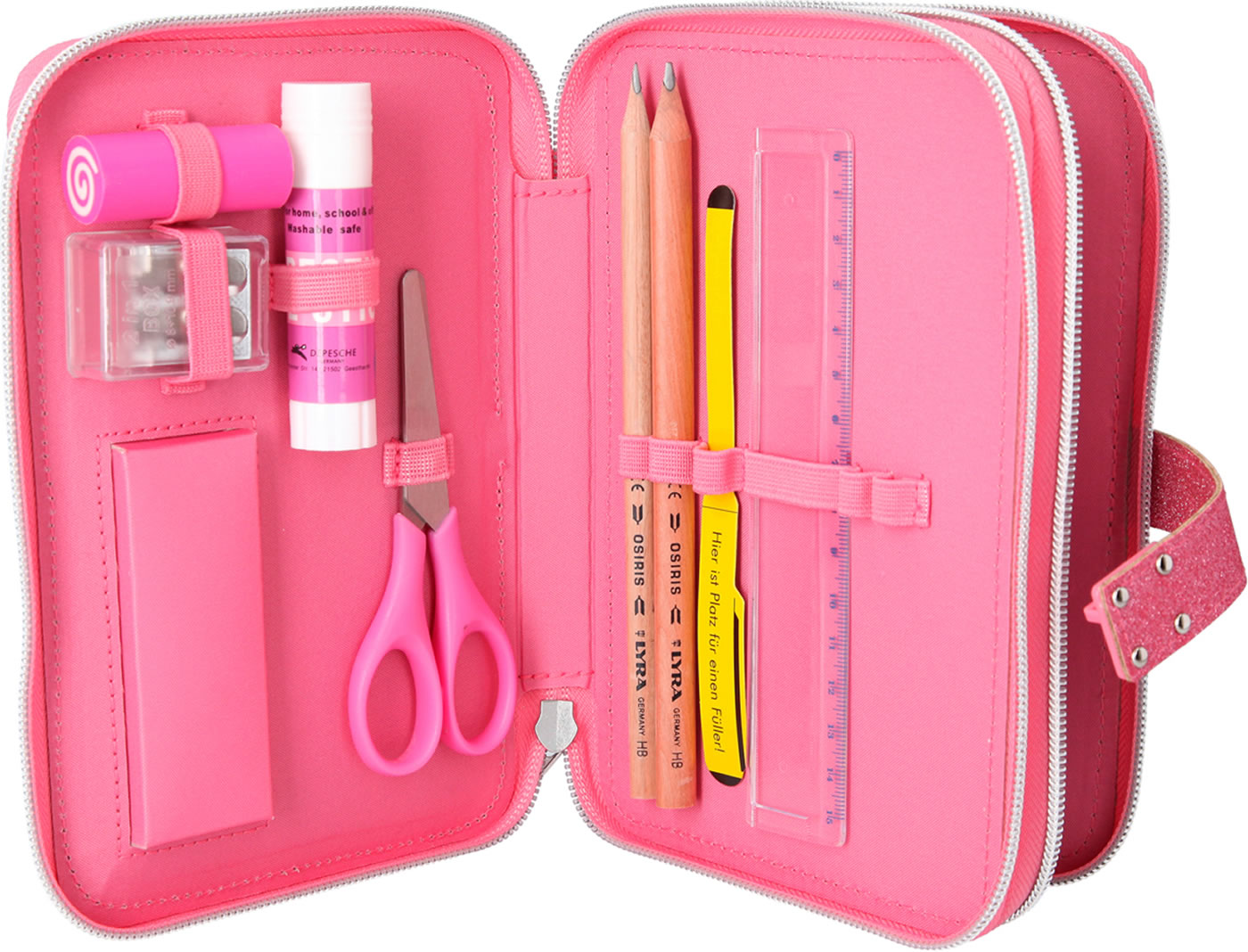 Die Federtasche ist mit einem Code gesichert. Sie lässt sich nur mit der richtigen Zahlenkombination öffnen, die du festlegst.