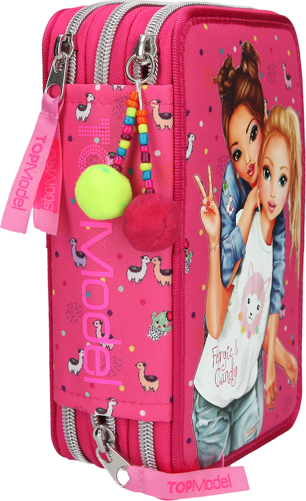 TOPModel Federtasche mit drei Fächern gefüllt Alpaka pink