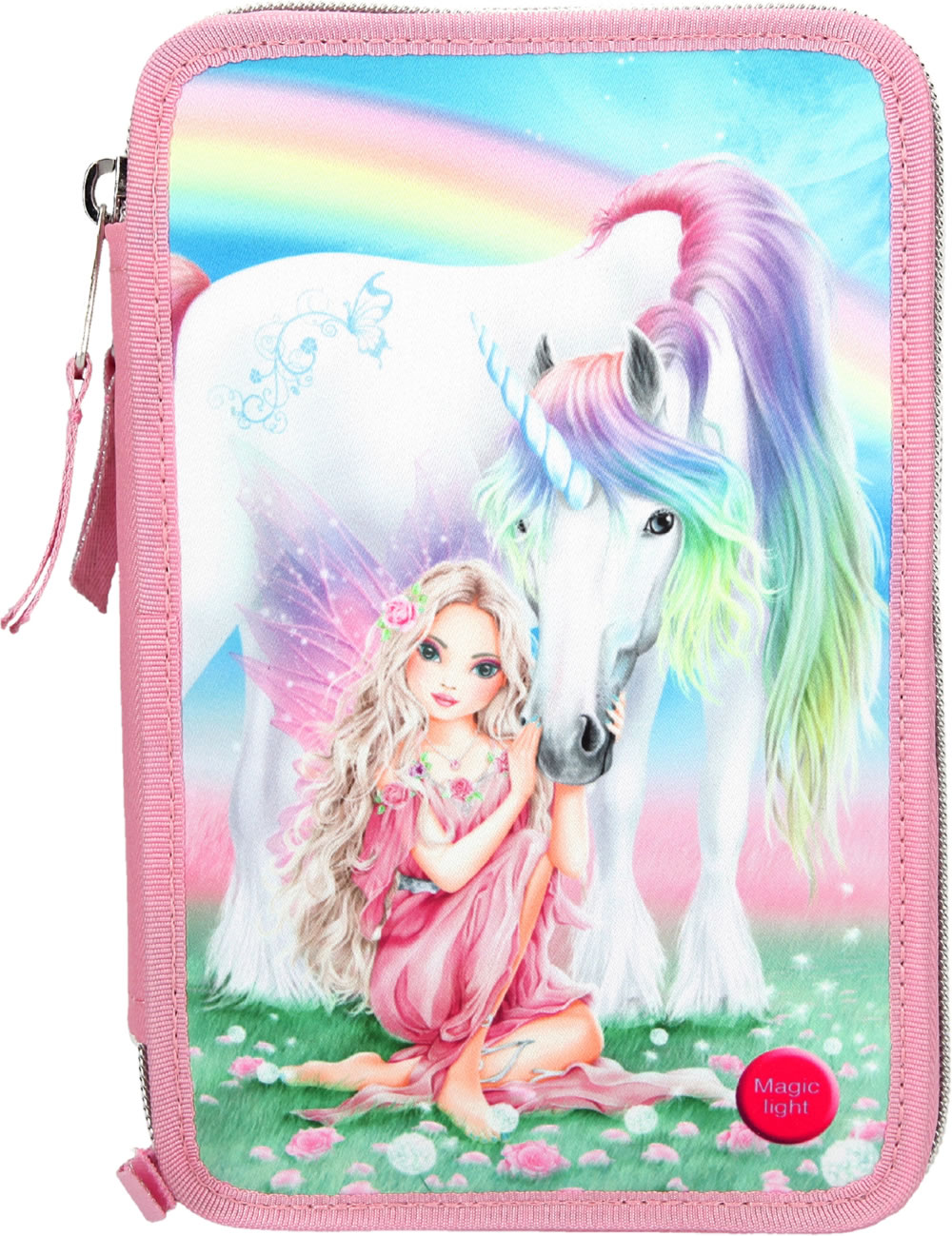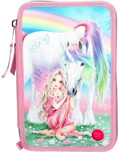 TOPModel Federtasche mit drei Fächern gefüllt LED Fantasy Model Einhorn