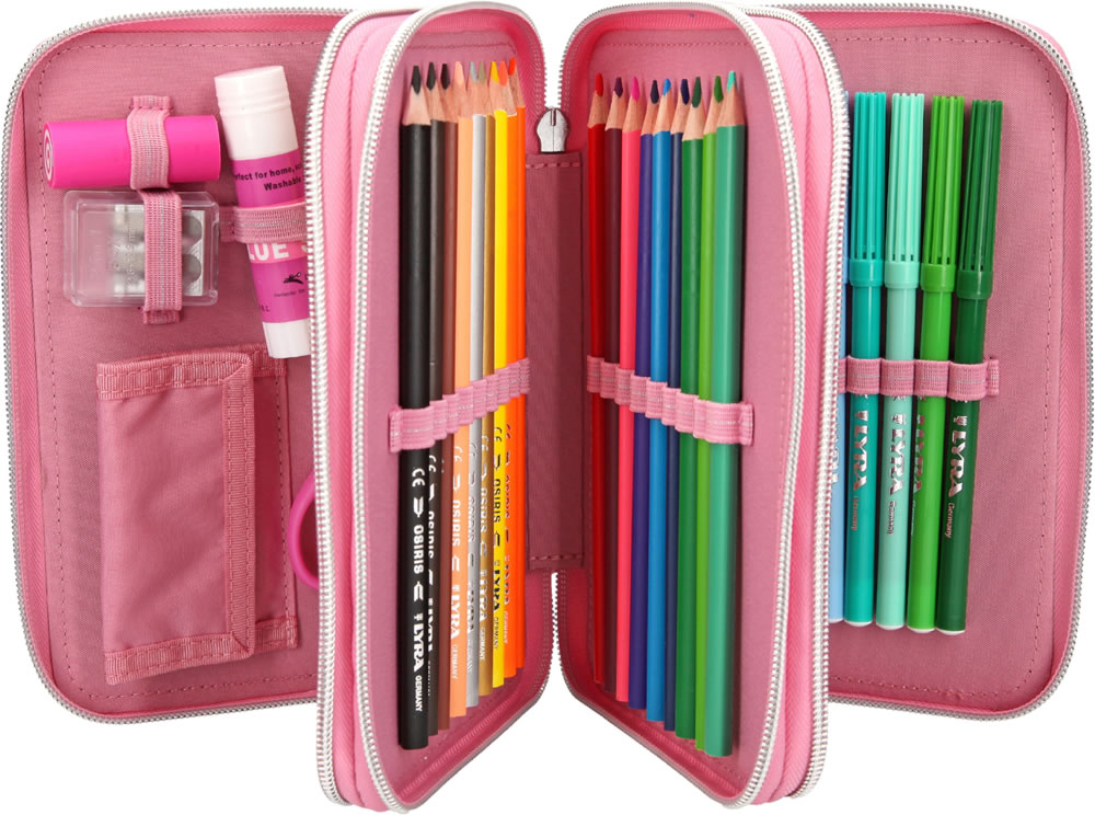 Die Federtasche ist mit LED und leuchten in bunten Farben.