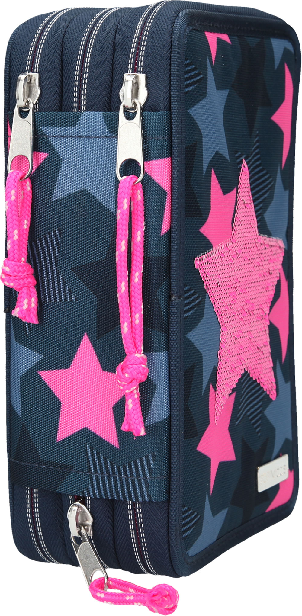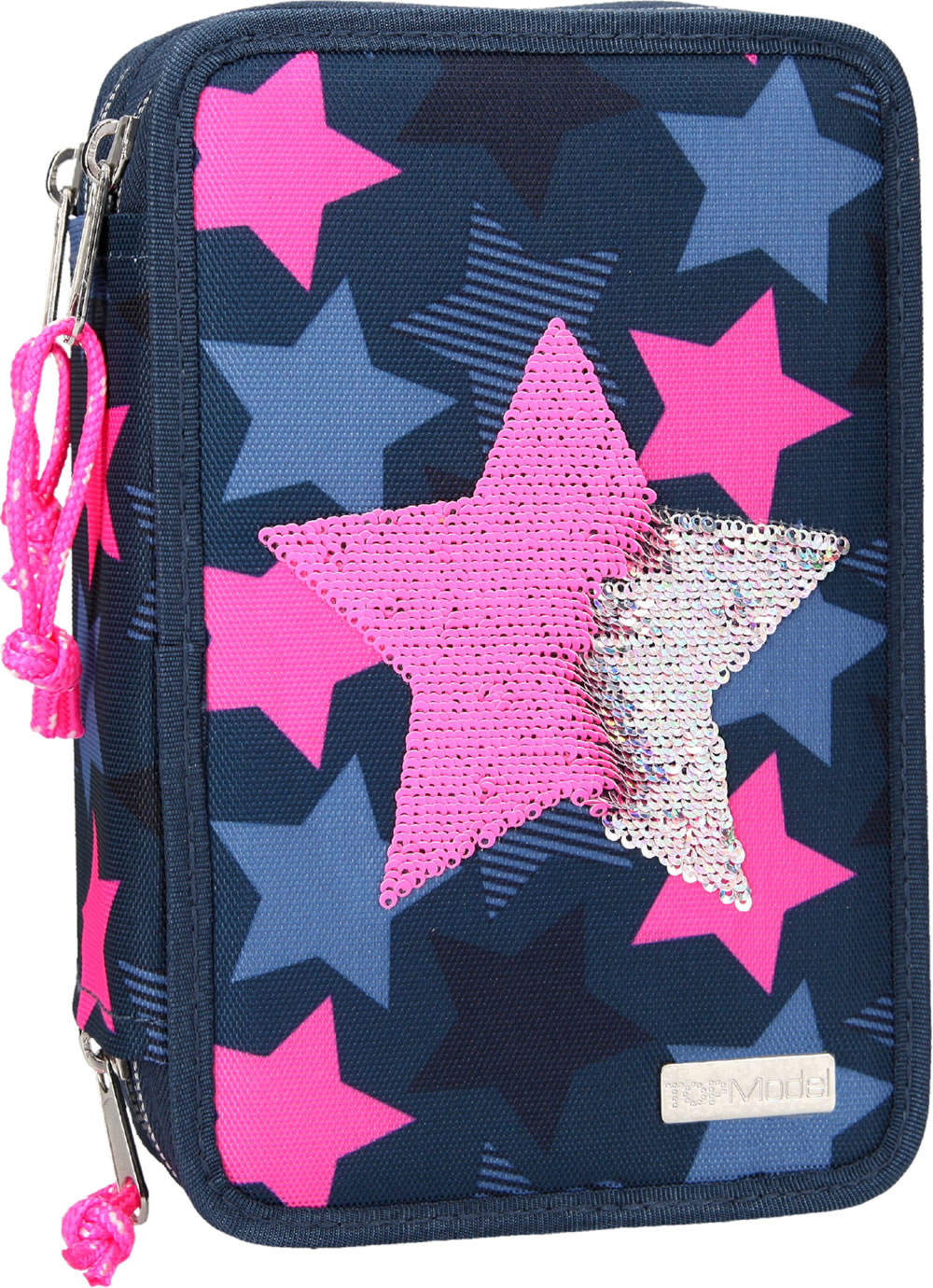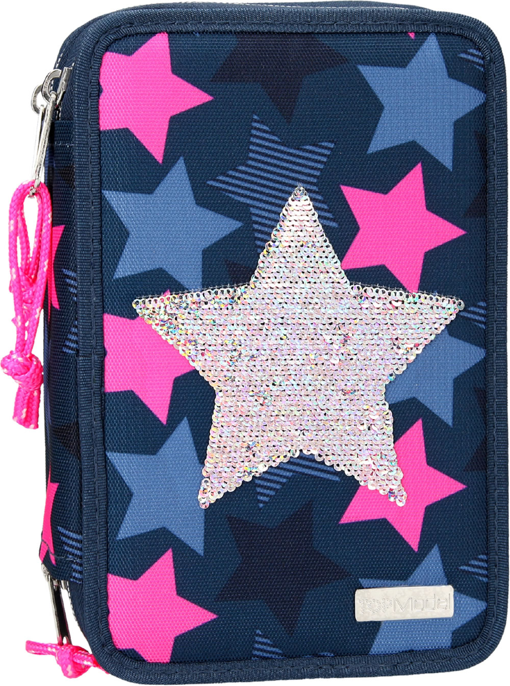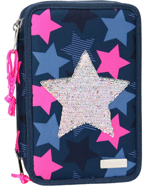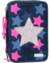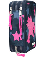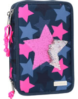 TOPModel Federtasche mit drei Fächern Pailletten Stern dunkelblau