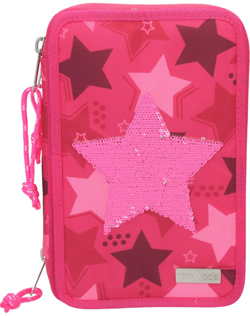 TOPModel Federtasche mit drei Fächern Streichpailletten Stern pink