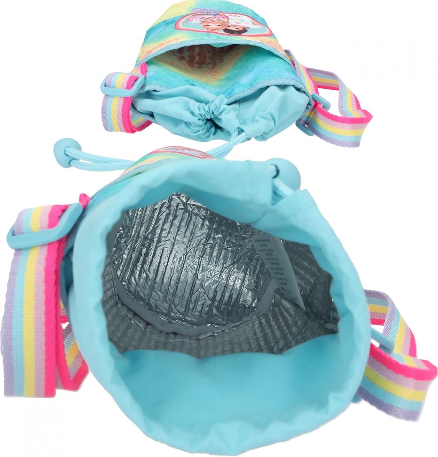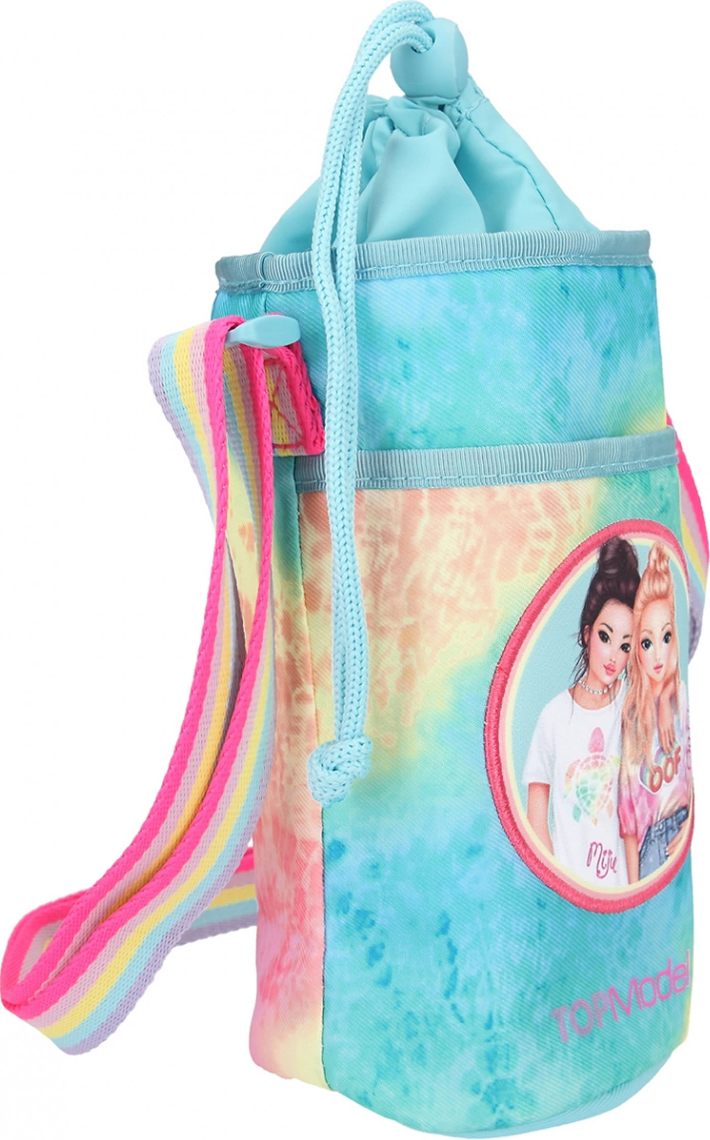 In dieser Tasche kannst du deine Trinkfläsche mitnehmen. Durch das Isoliermaterail bleibt das Getränk schön kühl. Mit einem Zugband läßt sich die Tasche verschließen. Der verstellbare Tragegurt ist regenbogenbunt.