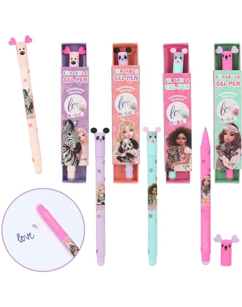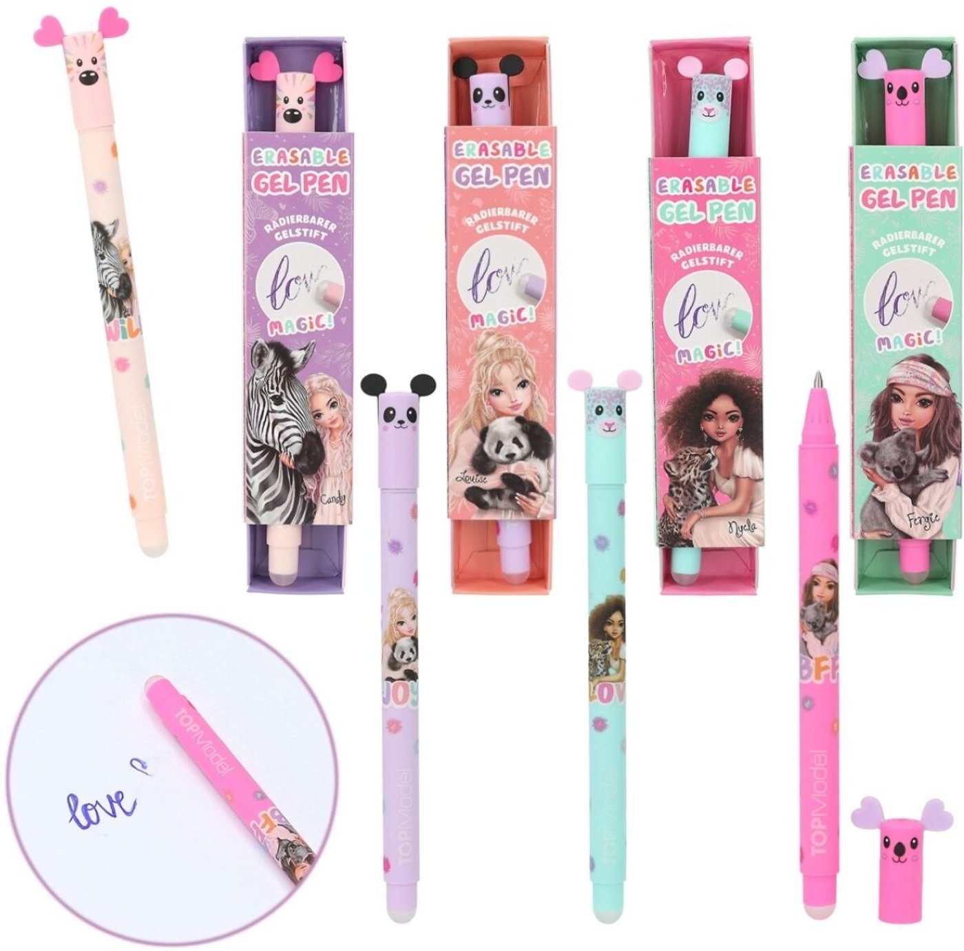 Jetzt wird's wild: Die radierbaren TOPModel-Gelstifte in 4 supersüßen Tier-Designs (Gepard, Koala, Panda, Zebra) schreiben mit blauer Tinte,