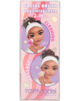 Sanft hoch zwei: die TOPModel-Gesichtsbürste mit superweichen Bürstenhaaren für die Reinigung auf der einen Seite und Silikonnoppen zur Massage auf der anderen Seite. Ein echtes Beauty-Must-have mit pink-silbernem Konfetti im transparenten Griff.