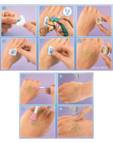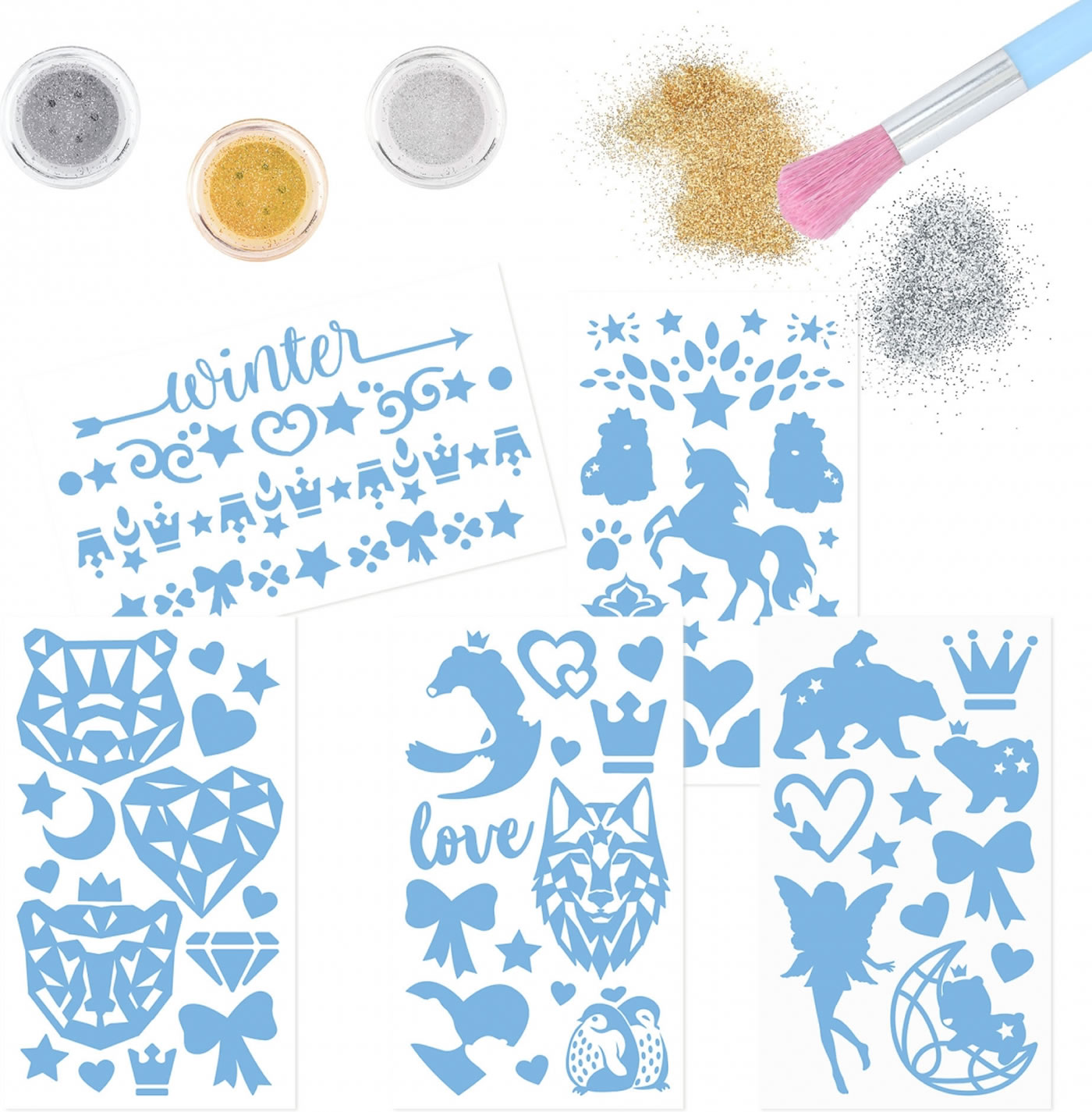 Wähle aus 43 Motiven und drei Glitzer-Pudern - und zaubere funkelnde Hingucker auf deine Haut.