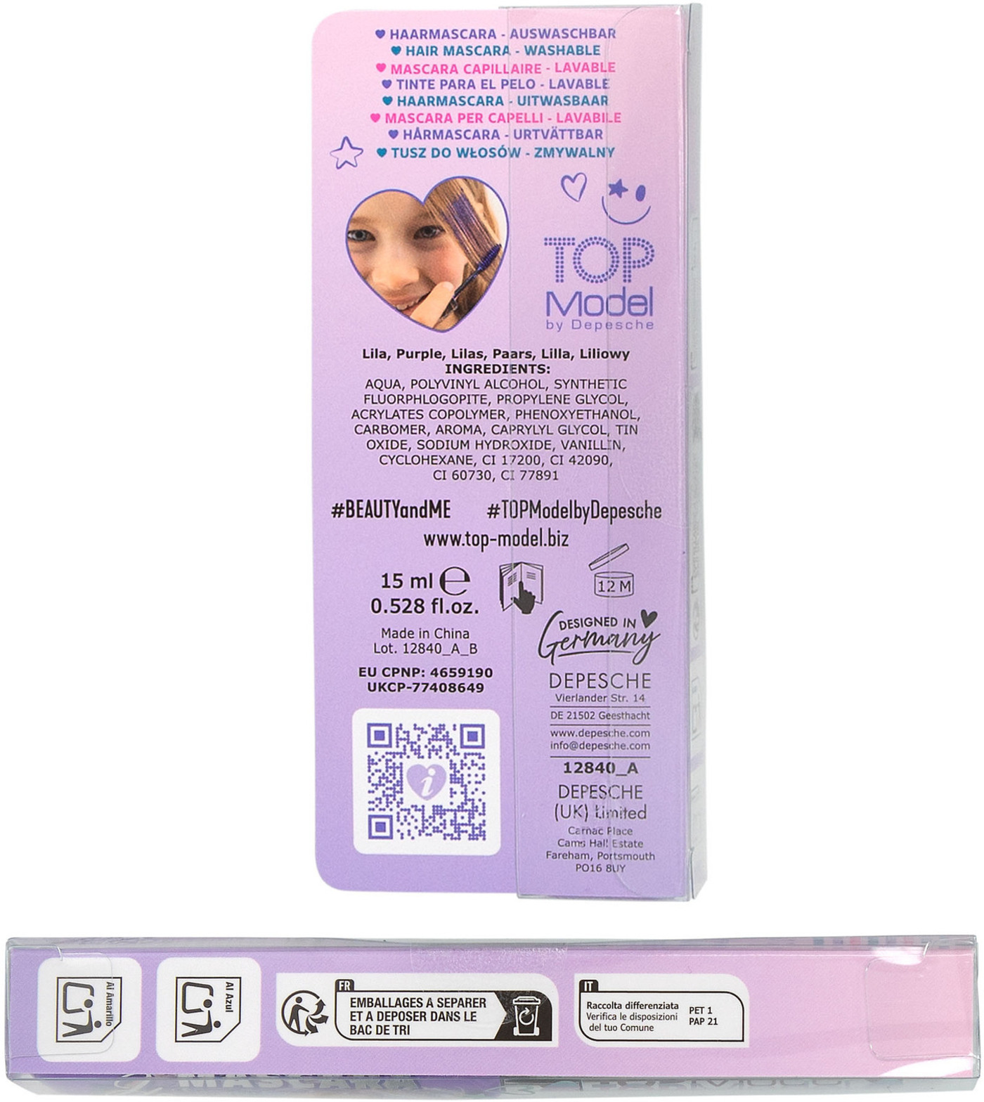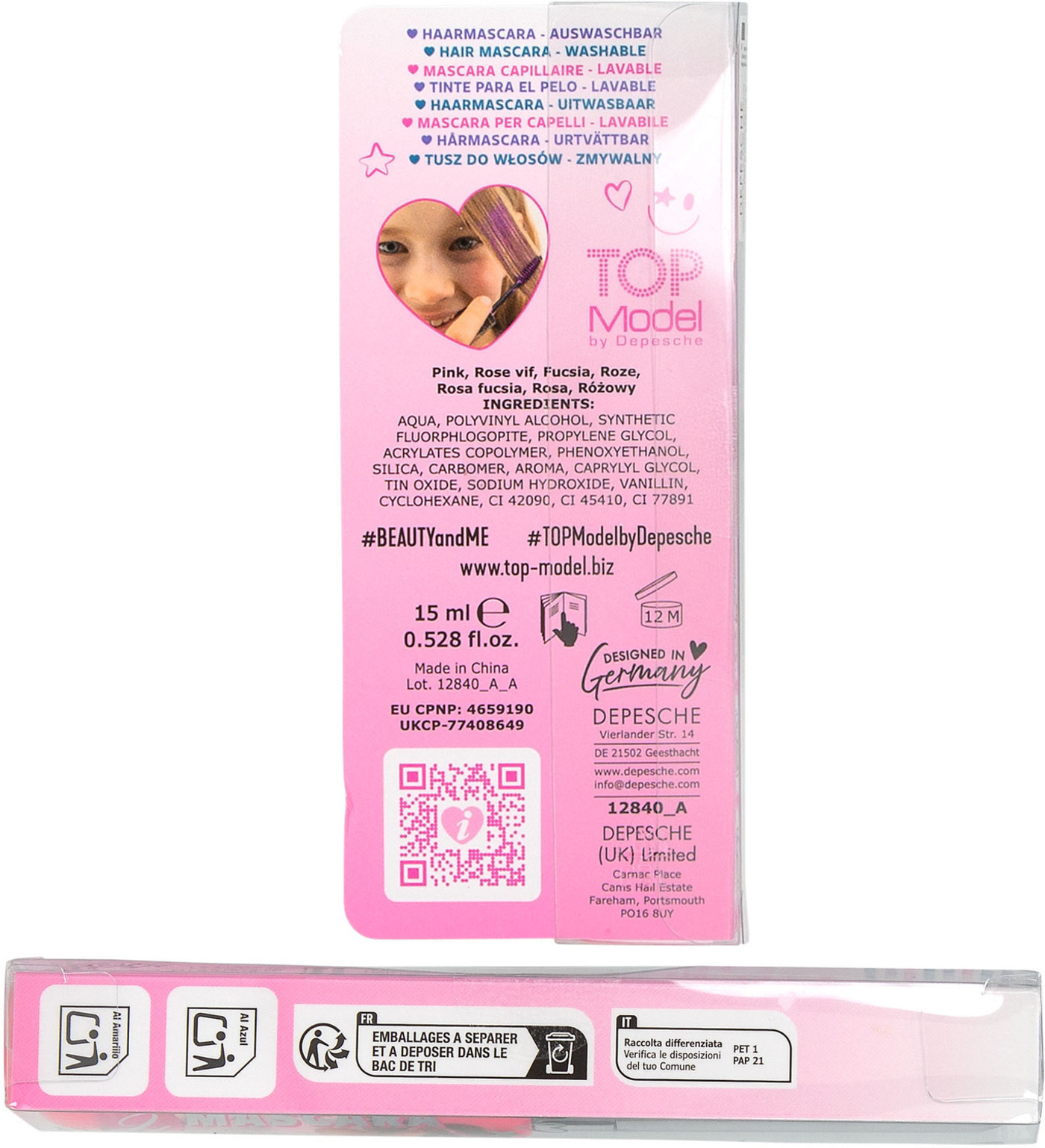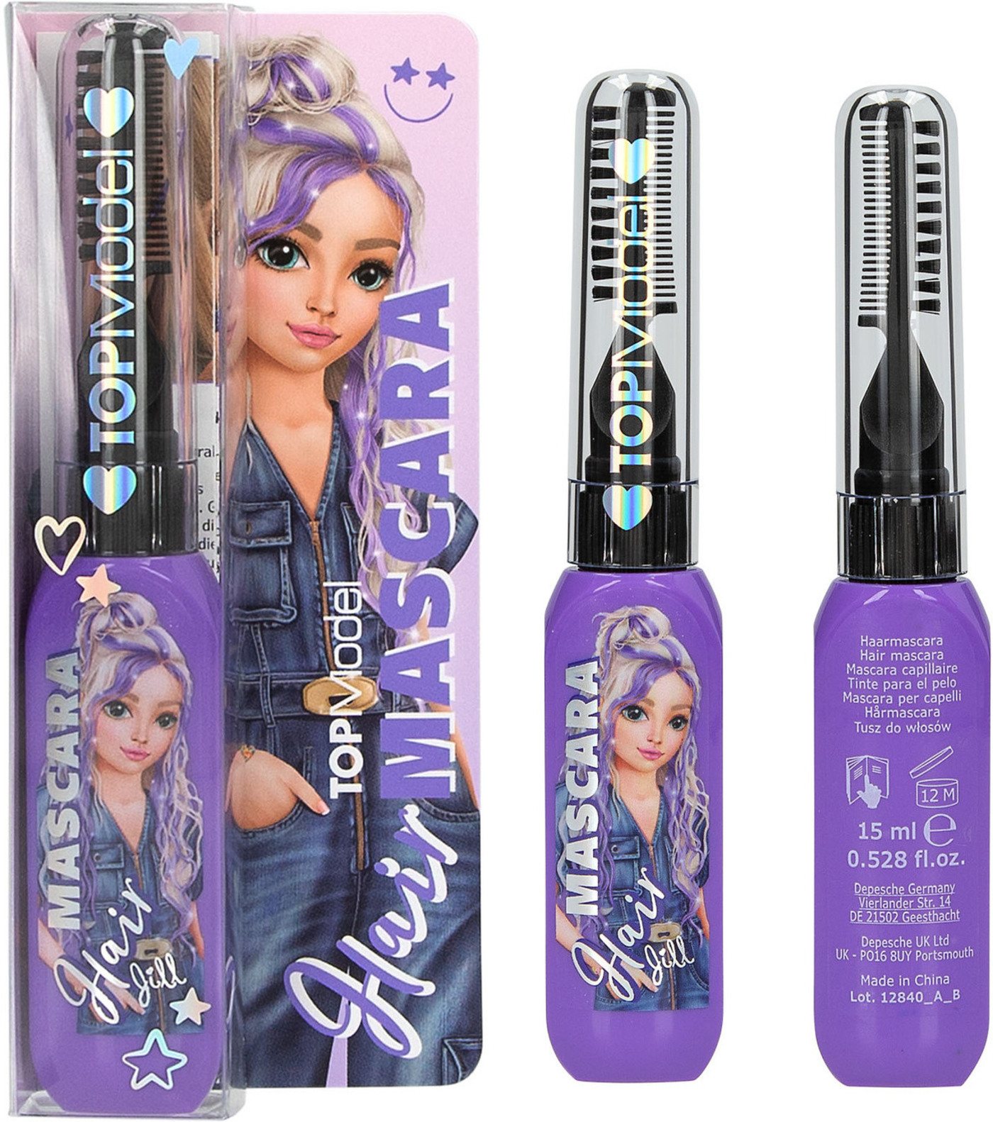 Für coole Farb-Akzente im Haar: Die Haarmascara von TOPModel macht kinderleicht tolle Strähnen. Mit dem Bürstchen die Farbe auftragen, dann mit dem kleinen Kamm im Deckel nachkämmen. In Blau, Pink und Lila. Die Farbe lässt sich problemlos auswaschen. Je 15 ml Haarmascara pro Fläschchen.