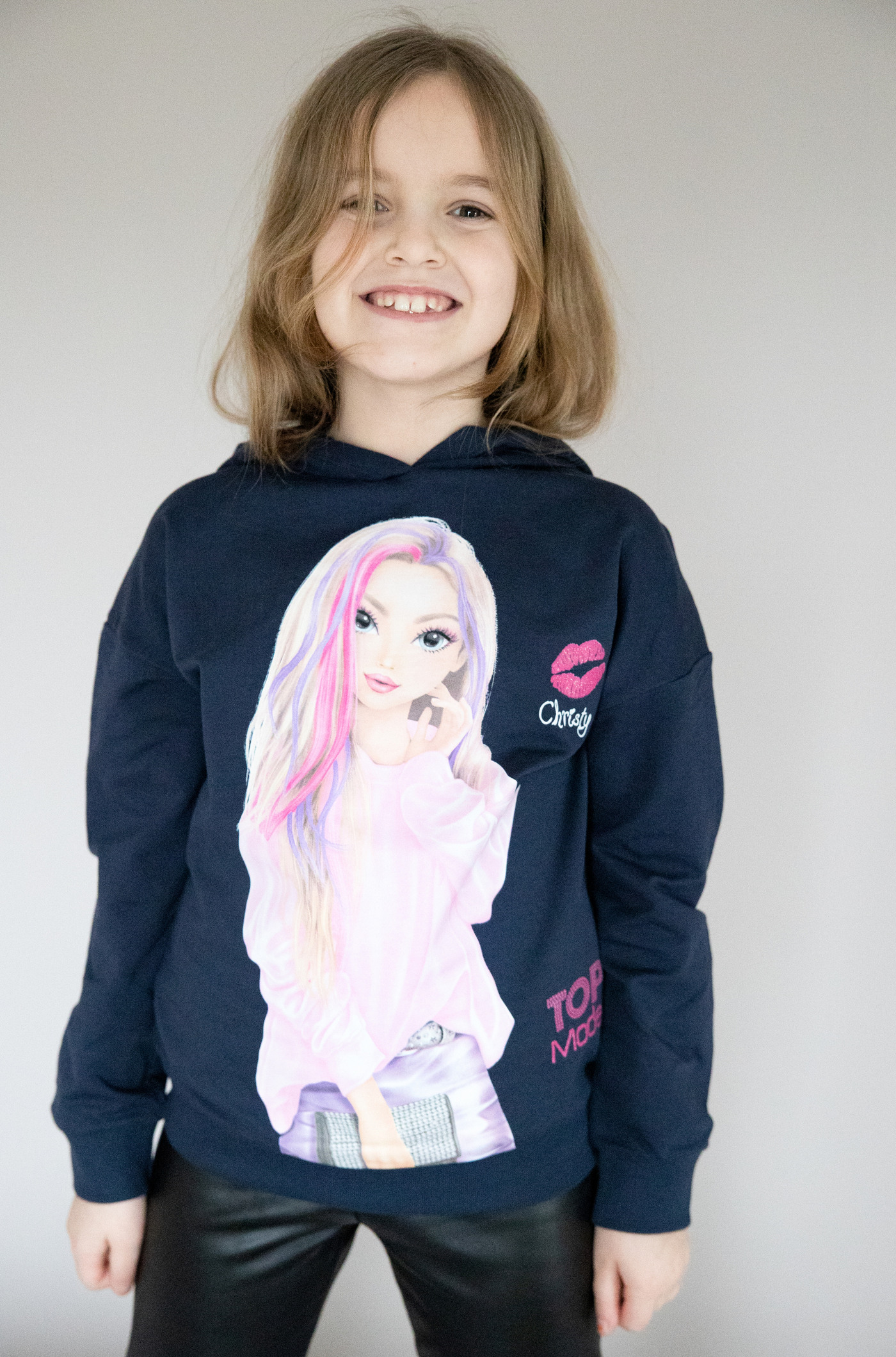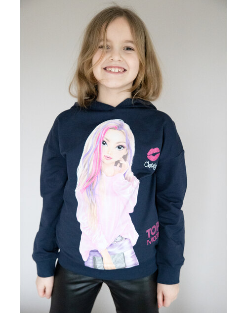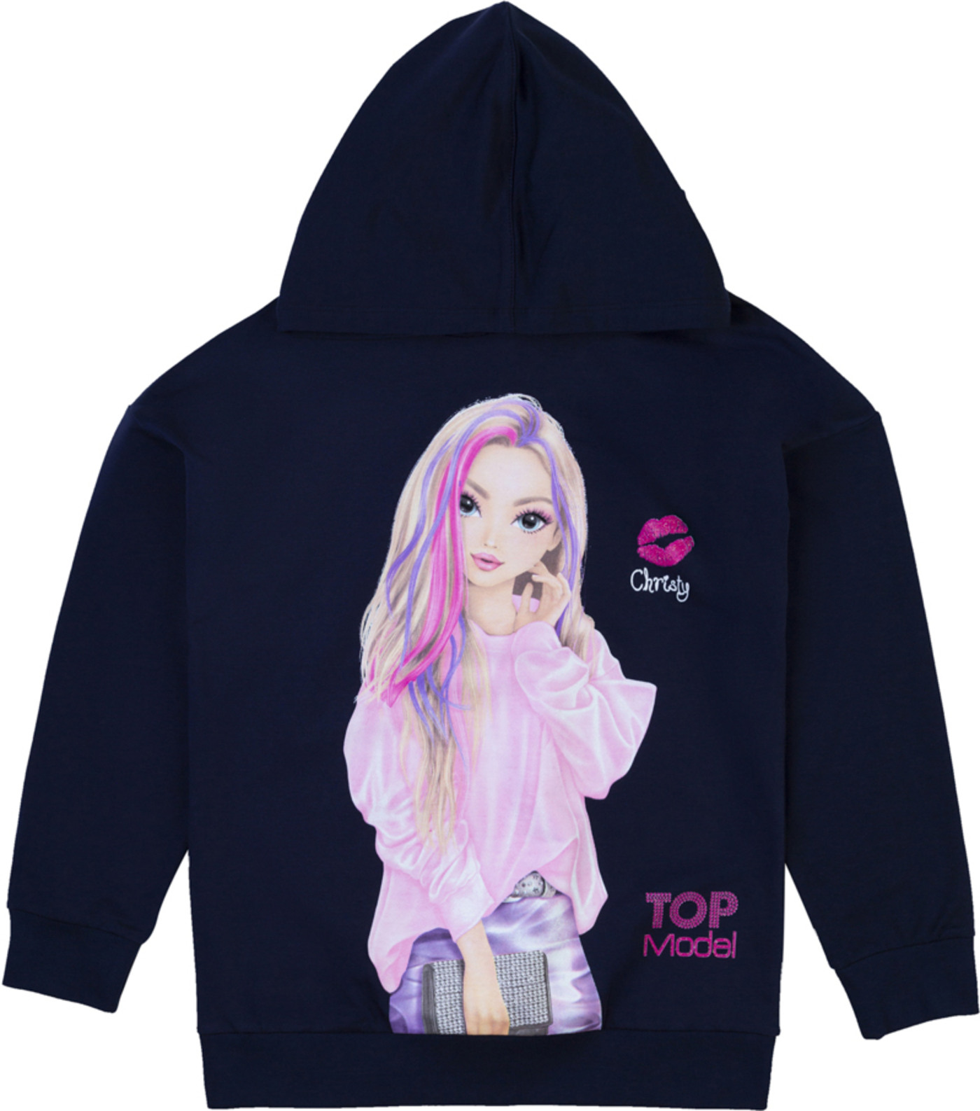 Auf diesem Kapuzen-Sweatshirt ist ein hübsches Motiv von Model Christy gedruckt. Zusätzlich wird der leichte Hoodie mit glitzernden TOPModel-Prints geziert.