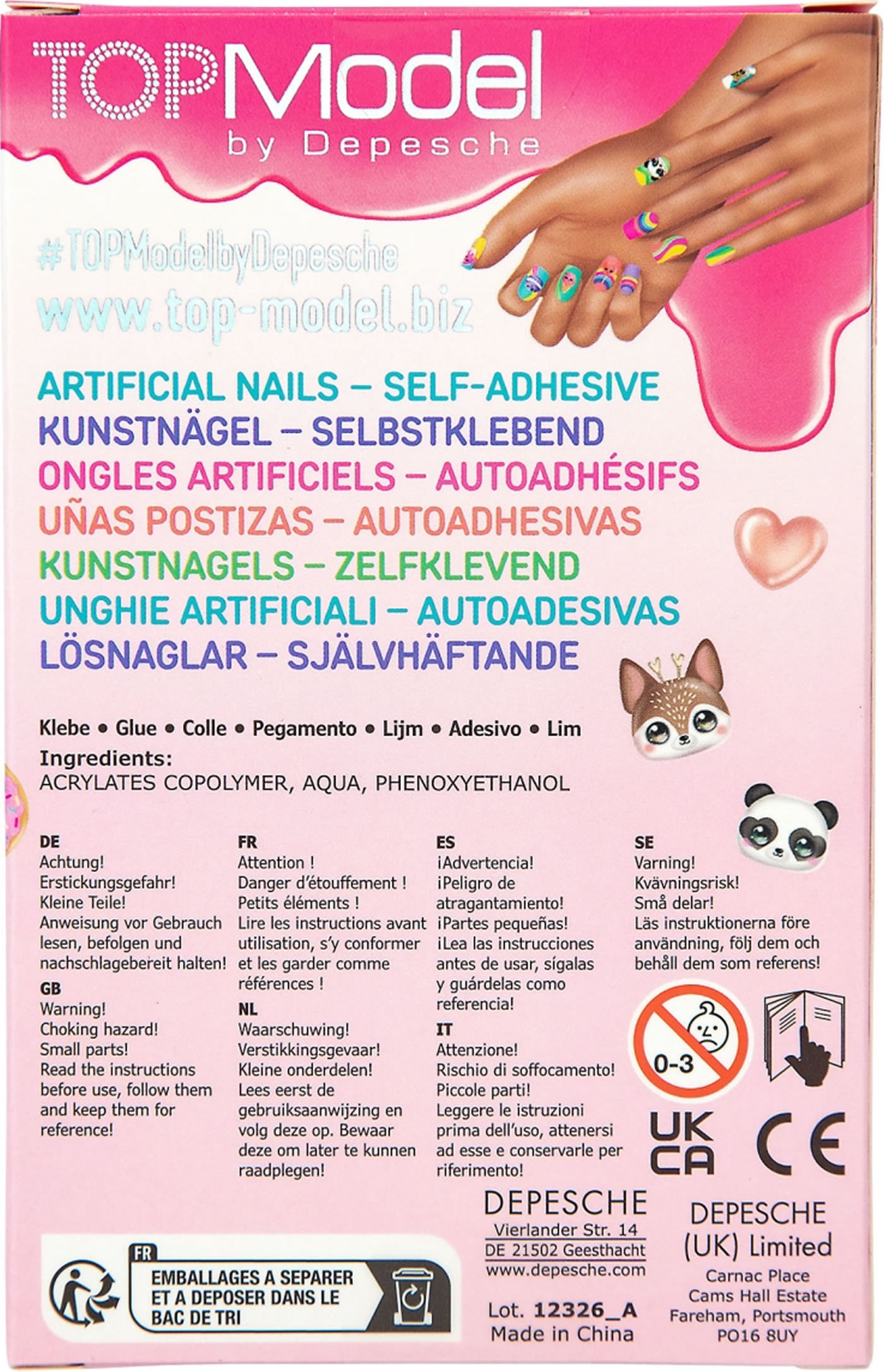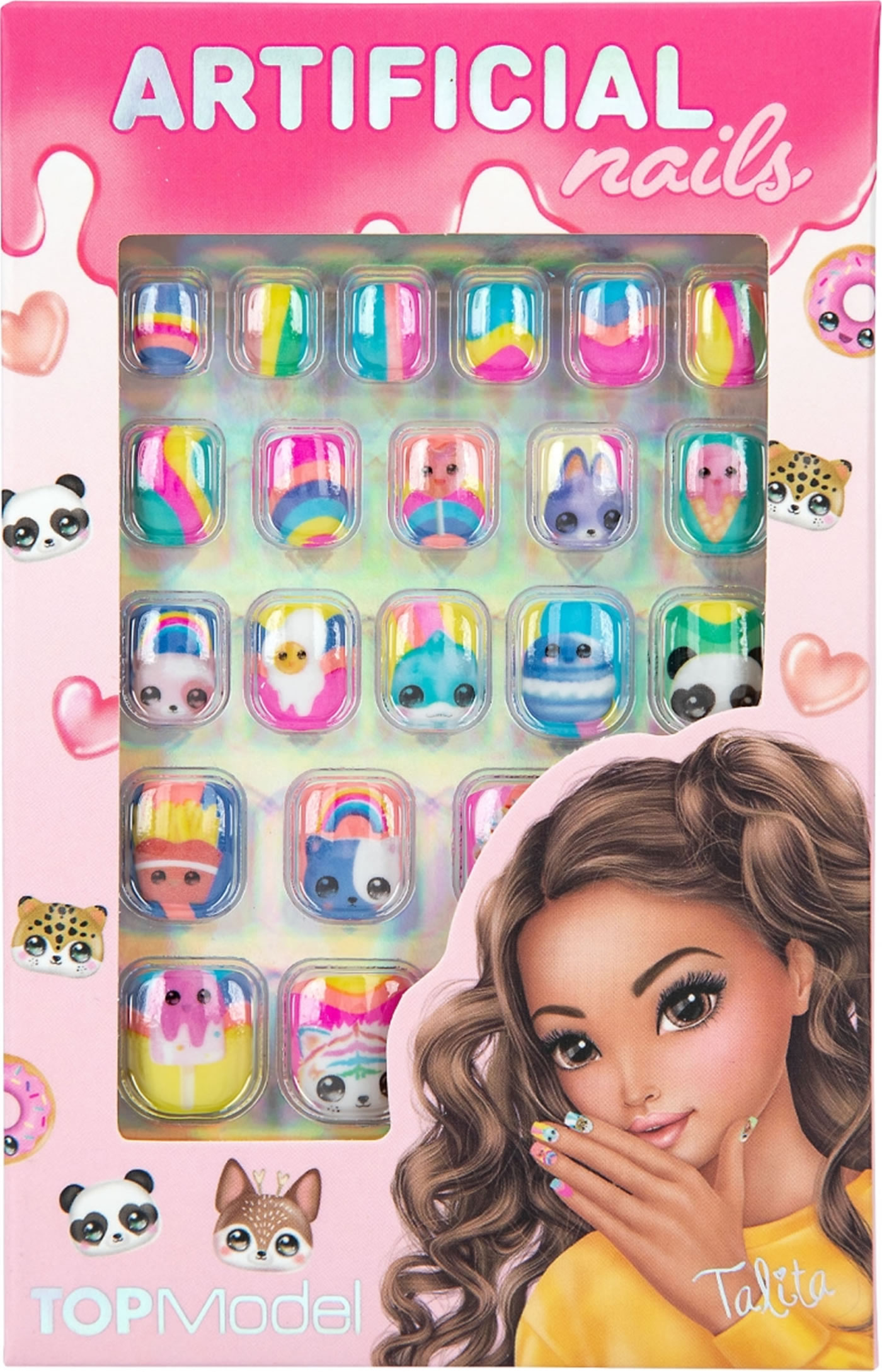 Für echte Beauty Queens: Die 24 selbstklebenden Kunstnägel von TOPModel haben, passend für jeden Nagel, unterschiedliche Größen. Mit tollen Designs und teilweise mit Glitzerdruck. Eine beiliegende Anleitung erklärt das einfache Aufkleben und Entfernen.