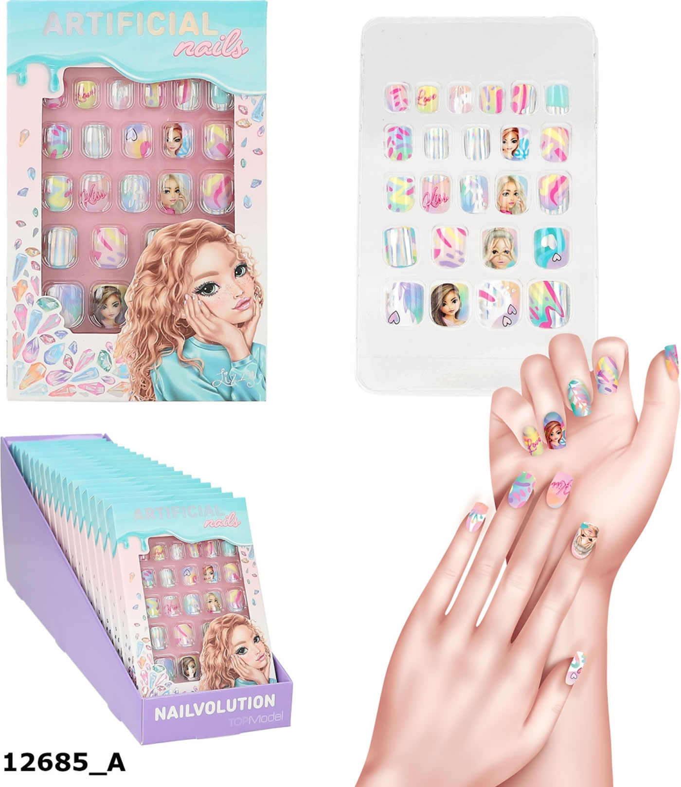 Bunte Nägel mit frischen Designs: Einfach die selbstklebenden Nägel von TOPModel auf die Fingernägel kleben und fertig ist der trendige Look. Und auch das Entfernen geht kinderleicht: einfach mit lauwarmen Wasser.