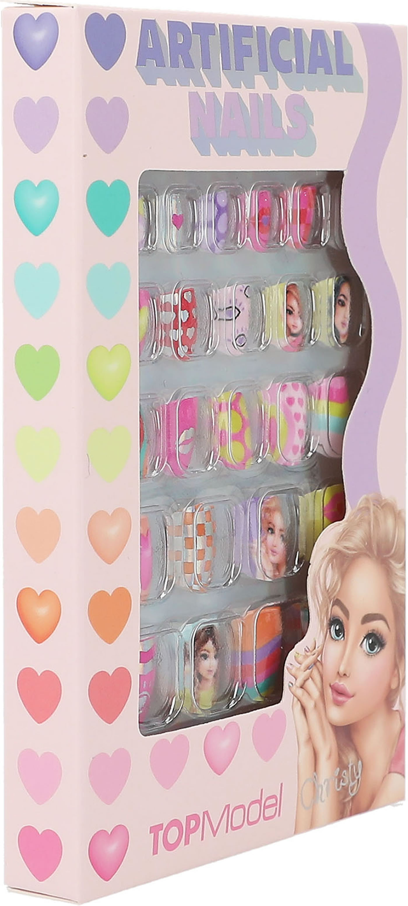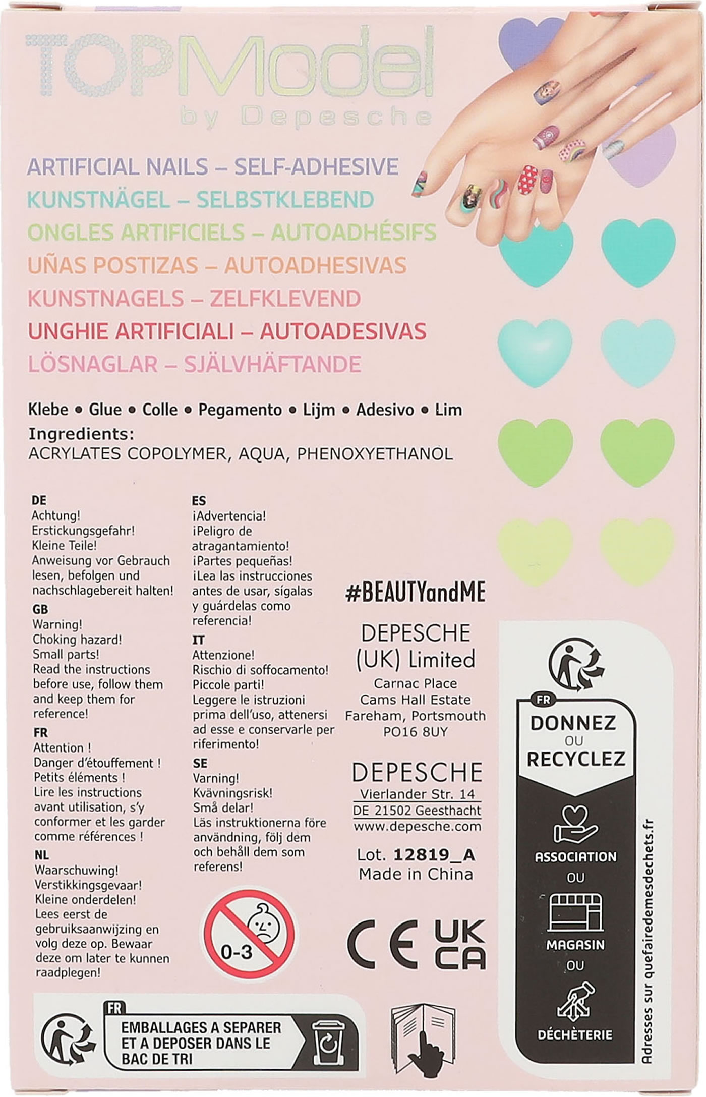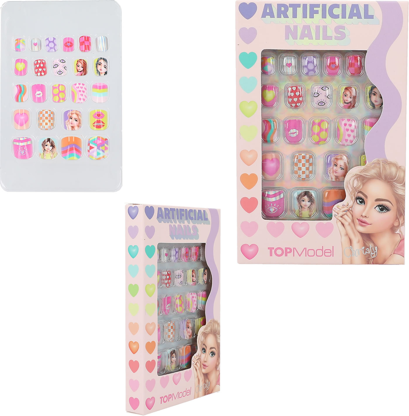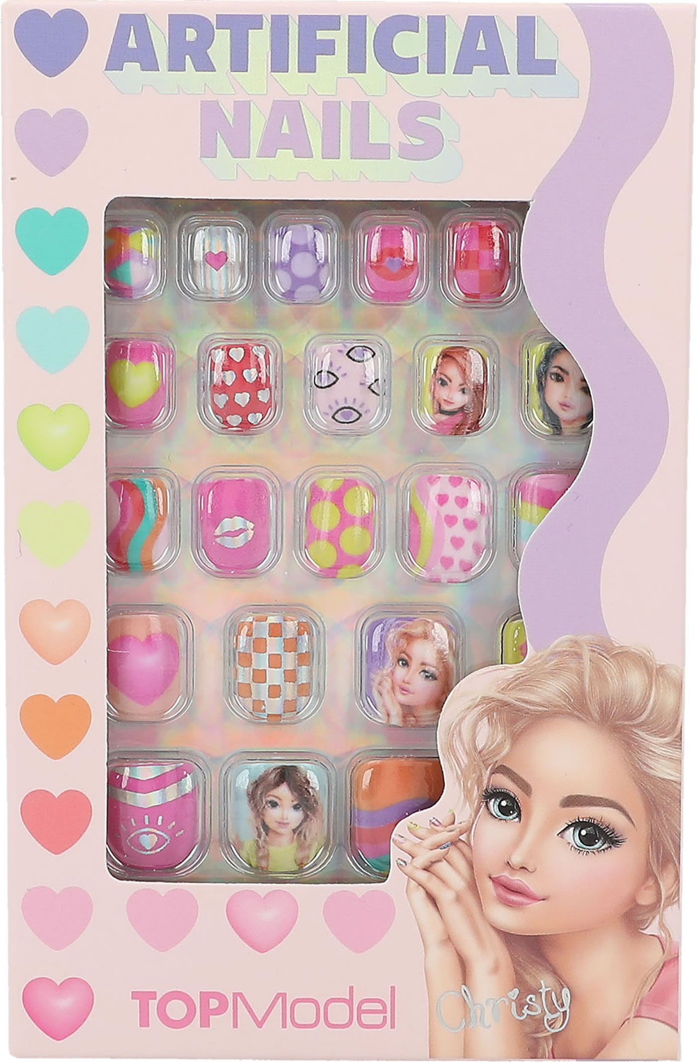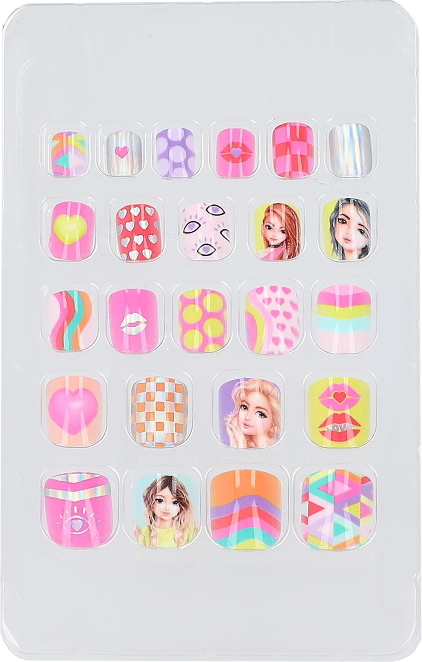 Fröhliche Neon-Nägel: Die am Nagelende abgeflachten, selbstklebenden Kunstnägel von TOPModel mit niedlichen Herzchen, tollen Mustern und stylishen Model-Motiven lassen sich kinderleicht auf die Fingernägel aufkleben und genauso einfach mit Wasser wieder entfernen. 24 Kunstnägel pro Verpackung.