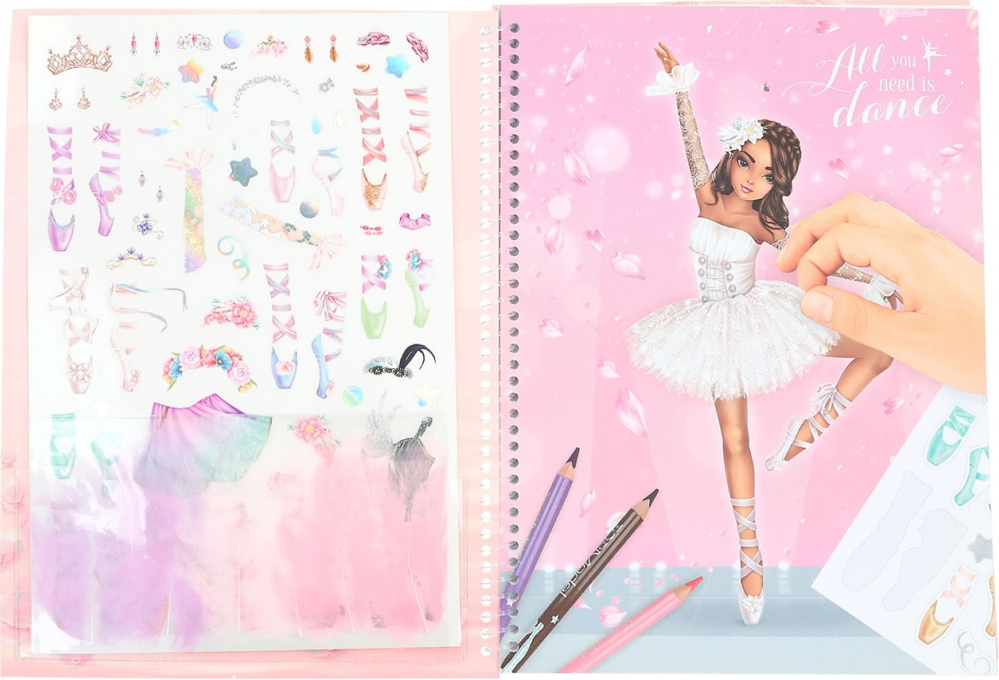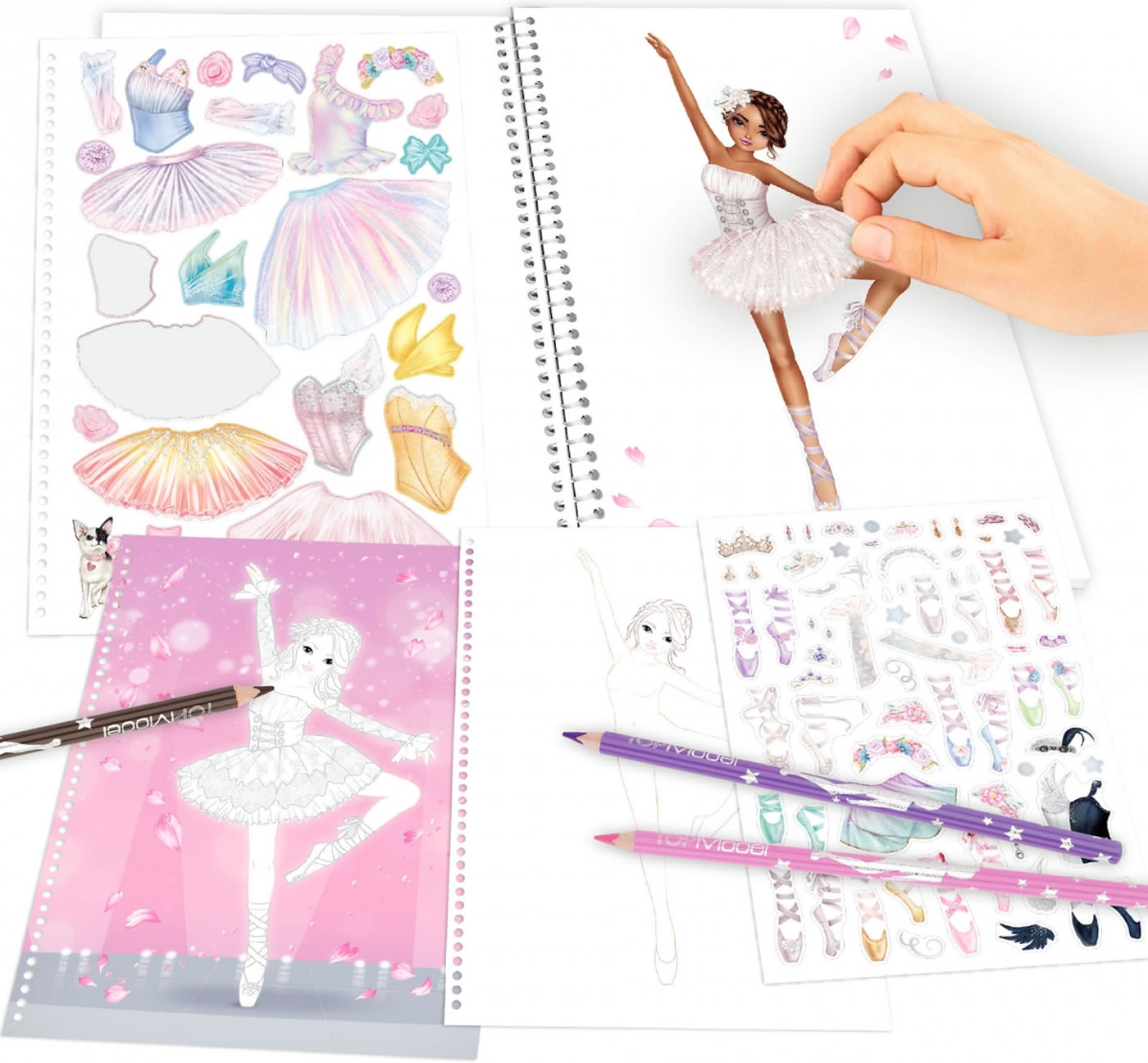 Auf 60 Seiten kannst du die TOPModel als Ballerina stylen. 3 Stickerbögen und 6 Federn sind auch dabei.