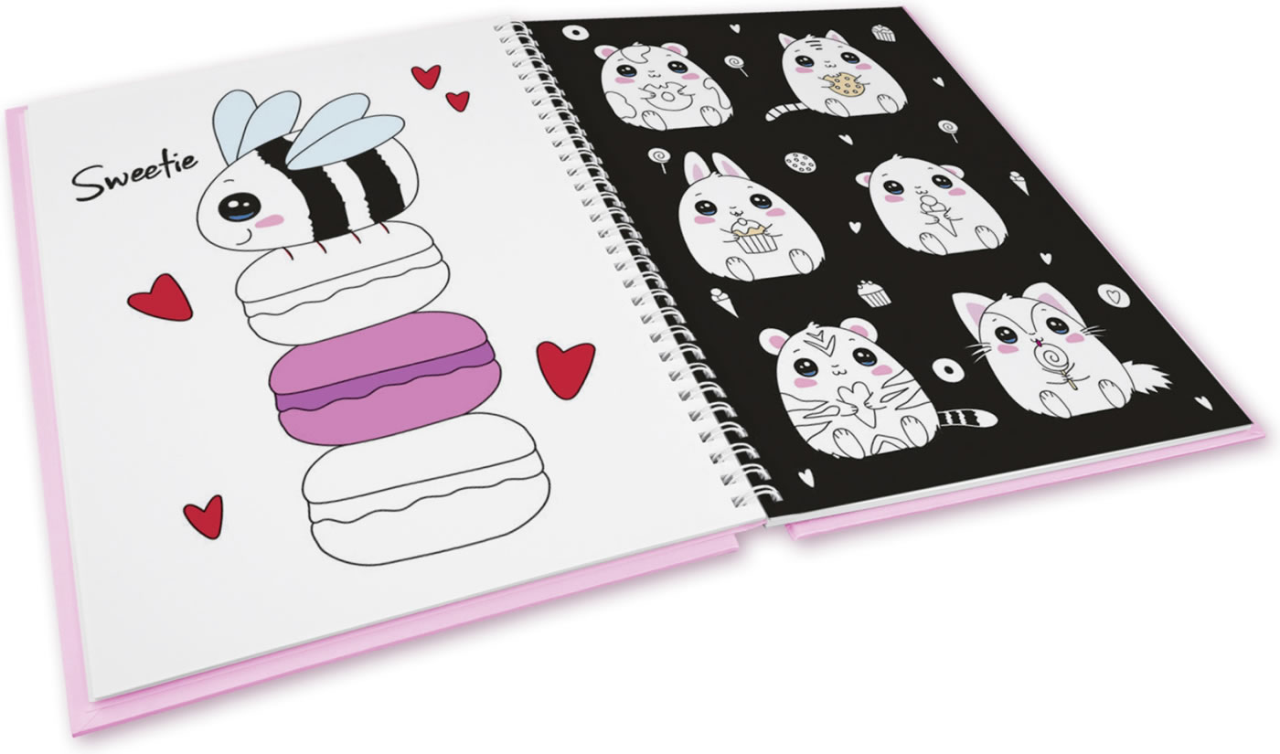 Auf 30 Seiten kannst du Törtchen, Donuts und andere süße Sachen gestalten.