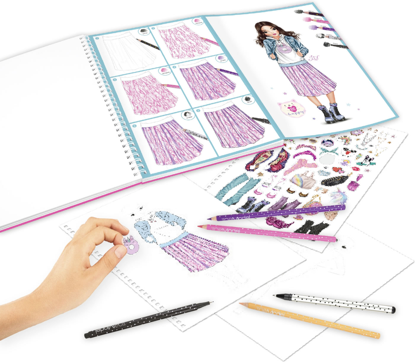 inklusive vielen bunten Stickern, Vorlagen, Stiften und Anleitungen