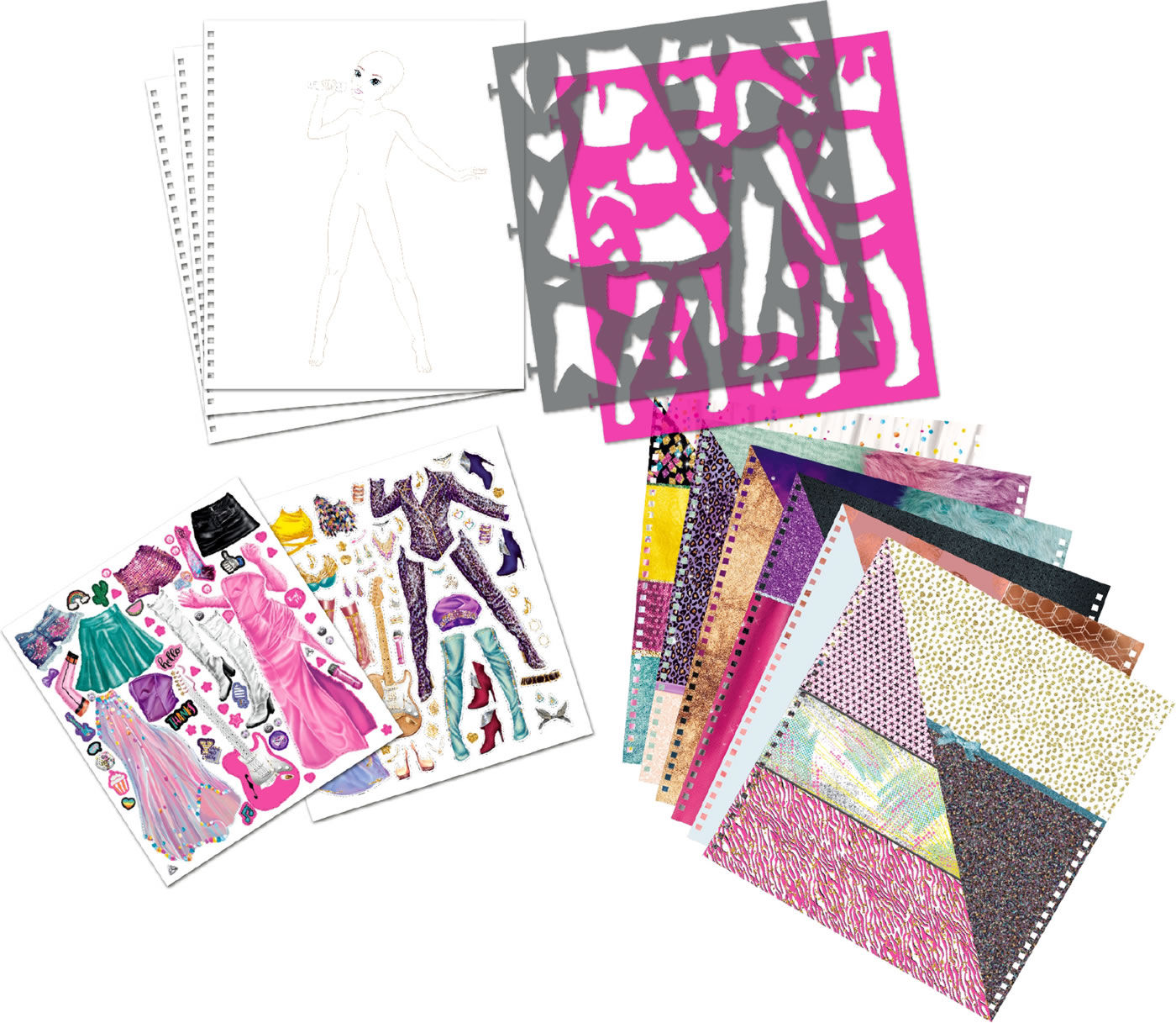 2 Schablonenscheiben, 2 Stickerbögen, 12 Musterblätter zum Ausschneiden
