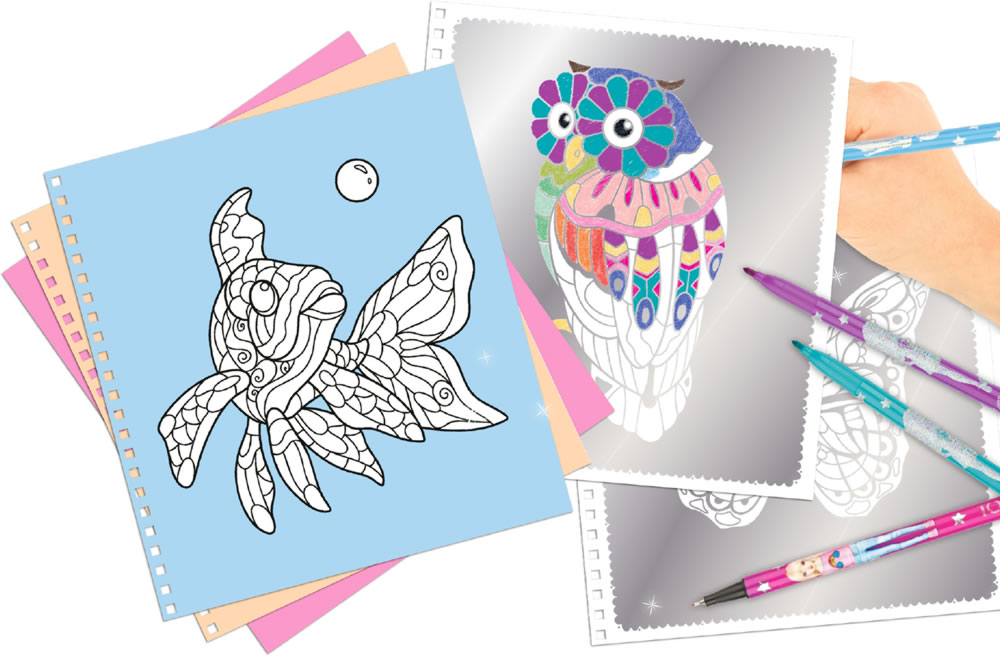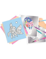 Beim Ausmalen entstehen fantastische Motive, die durch die silbernen Umrisse edel glänzen.