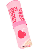 Extrem platzsparend, schnelltrocknend und mit anhängendem Gummiband aufrollbar.