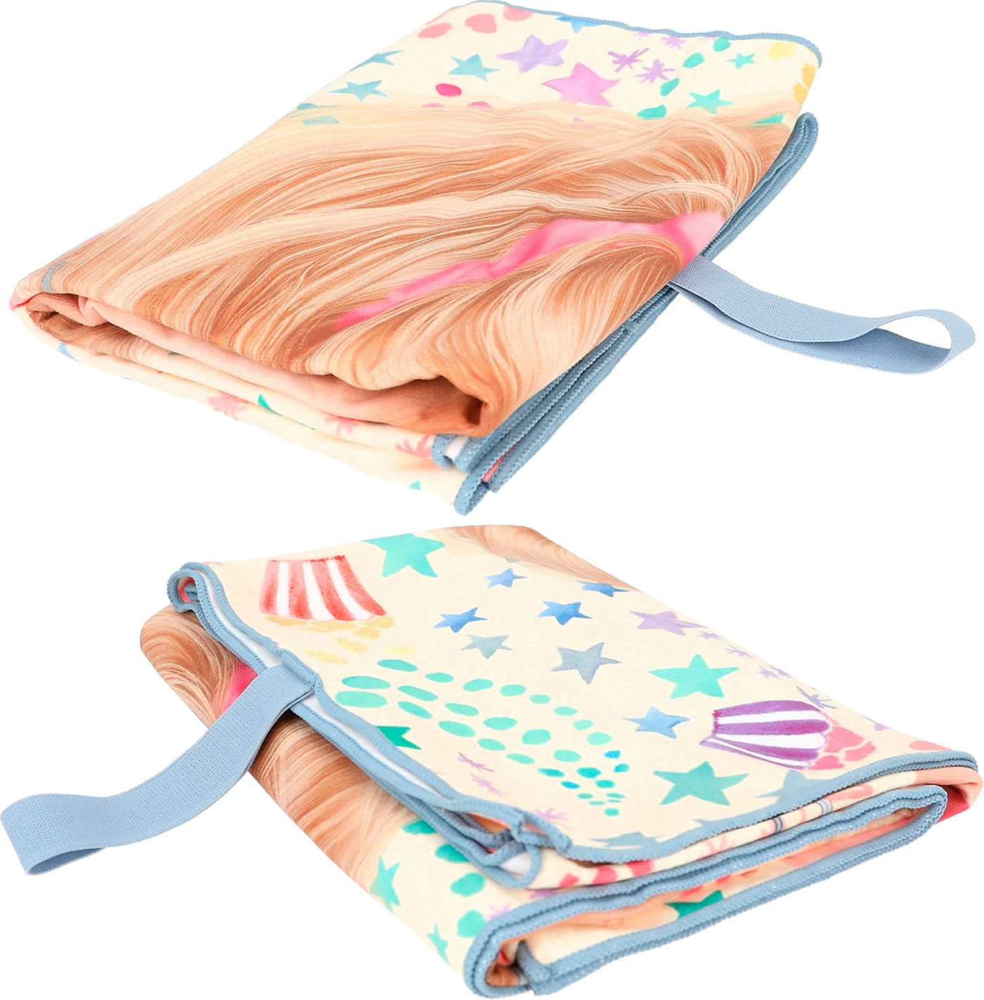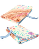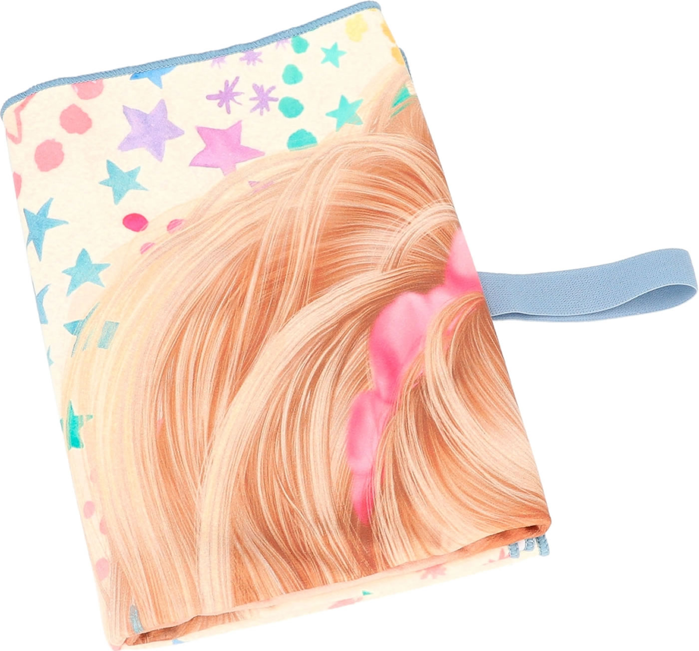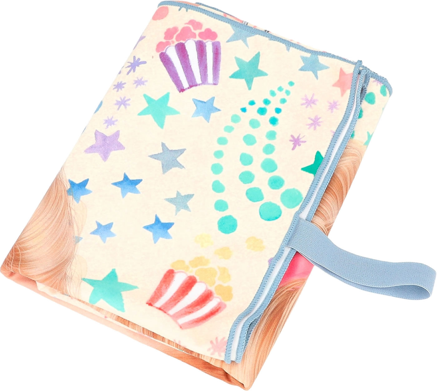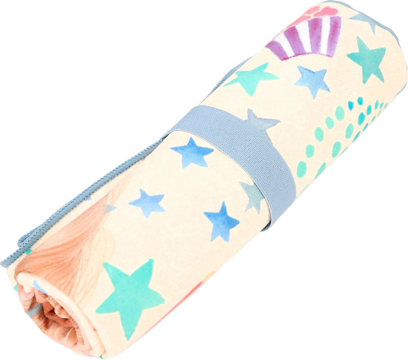 griffbereit. Fröhlich-buntes Sterne-Allover, niedliche Popcorn-Icons und ein supercooles Model-Motiv. Das alles schnelltrocknend, platzsparend zusammenrollbar und mit einem Gummiband praktisch zu fixieren.