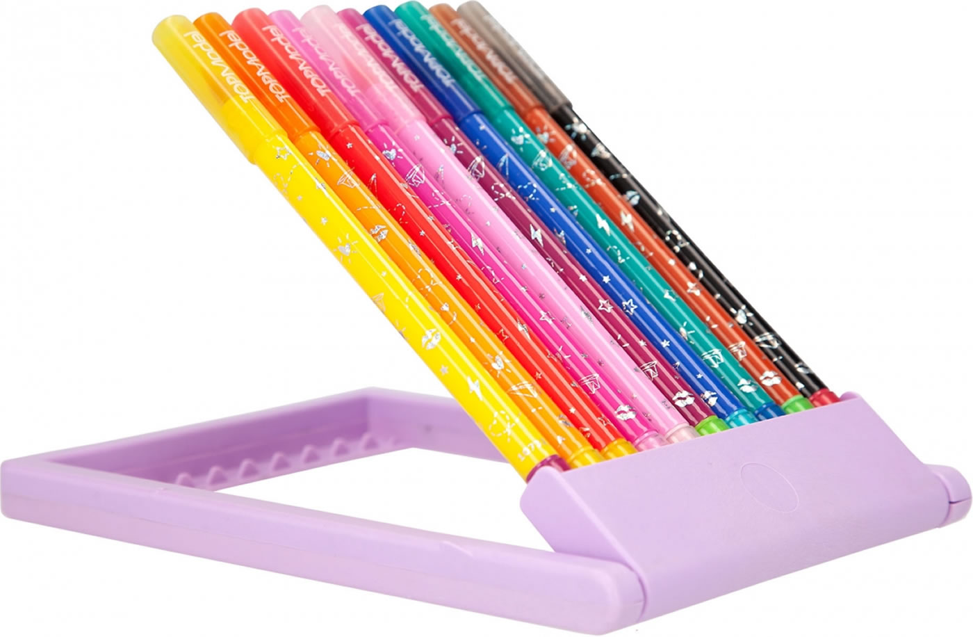Dank des praktischen Aufstellers können die Fasermaler überall mit hingenommen werden.