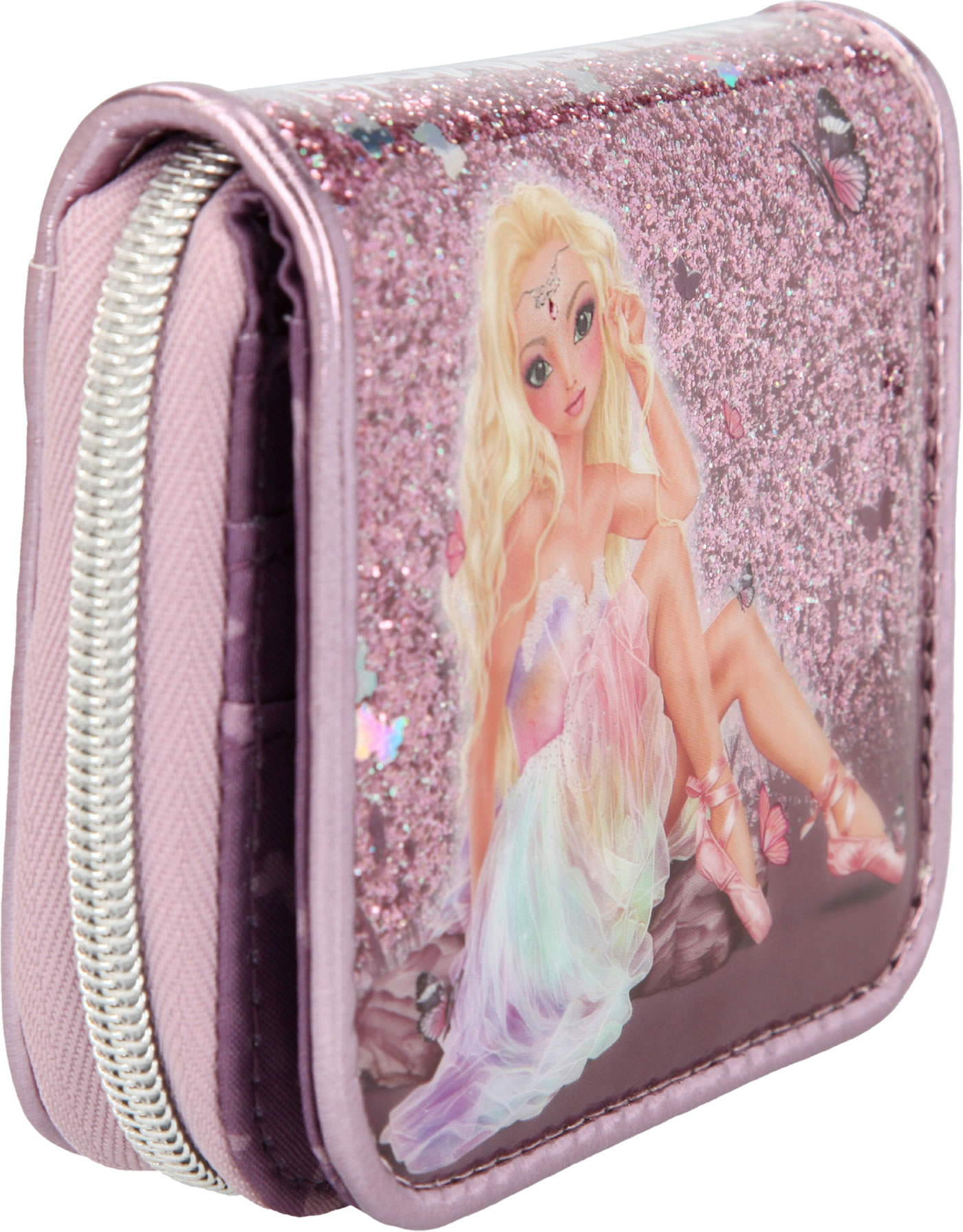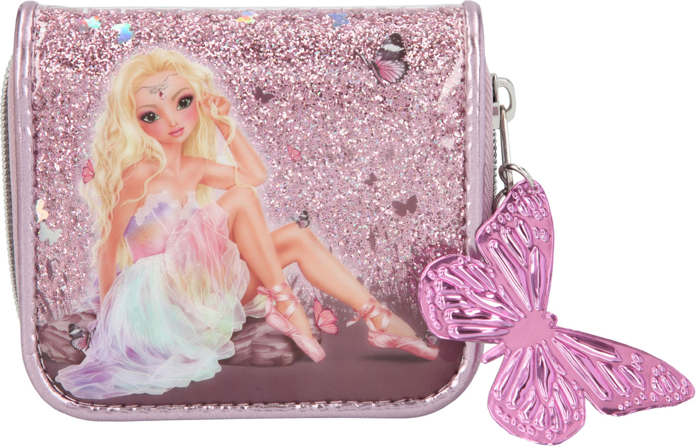 Ein Hingucker ist die glitzernde Vorderseite mit der Ballerina. Aber das Portmonee ist auch praktisch. Er bietet Platz für Karten, Scheine und Münzen.