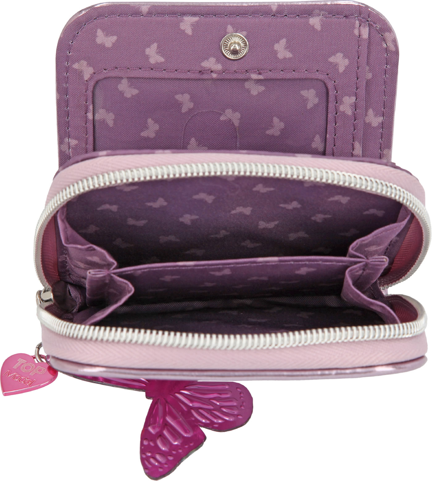 Ein besonderes Detail ist der Schmetterling am Reißverschluss. Innen befindet sich ein Sichtfenster für die Busfahrkarte.