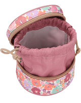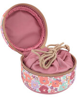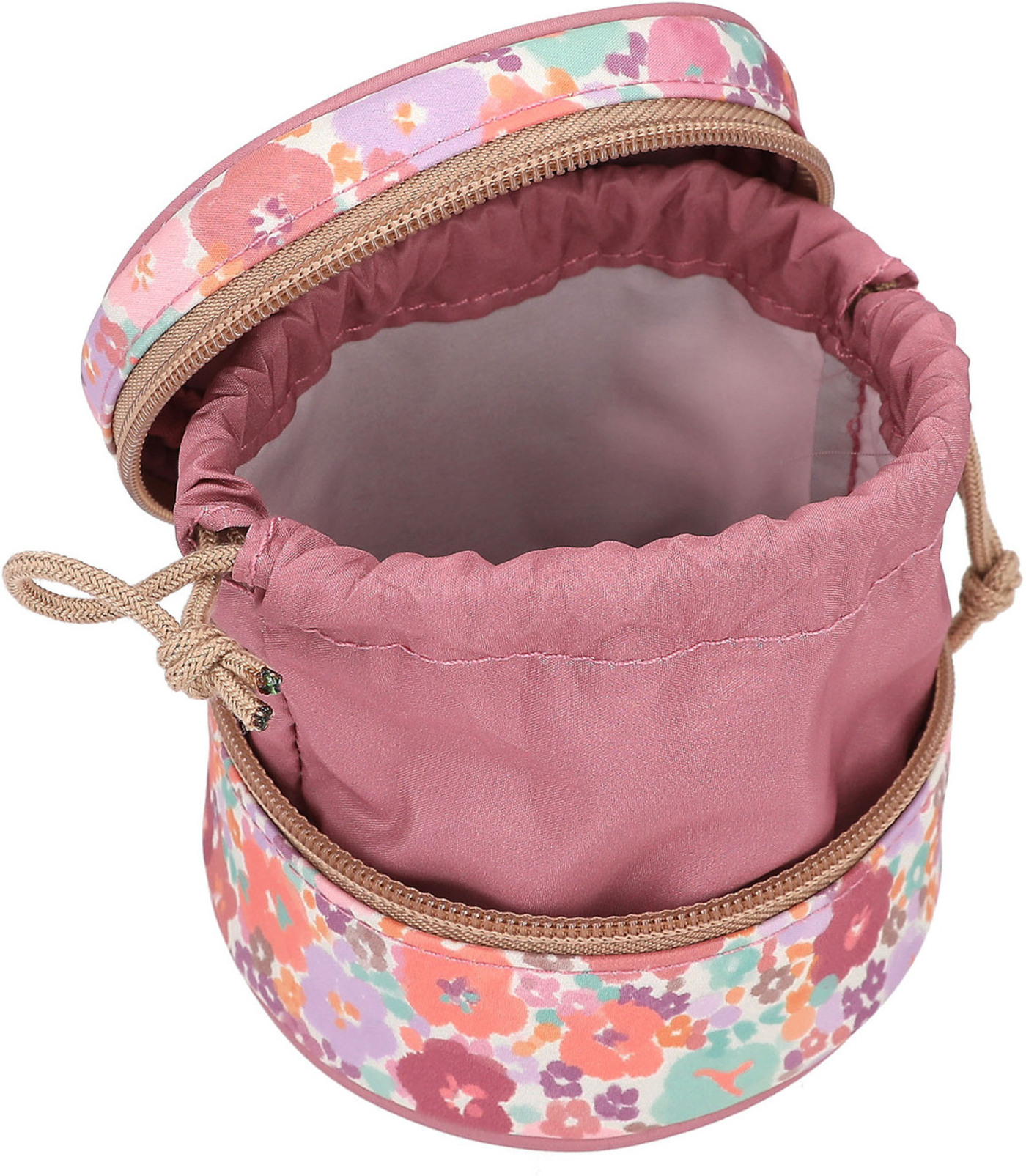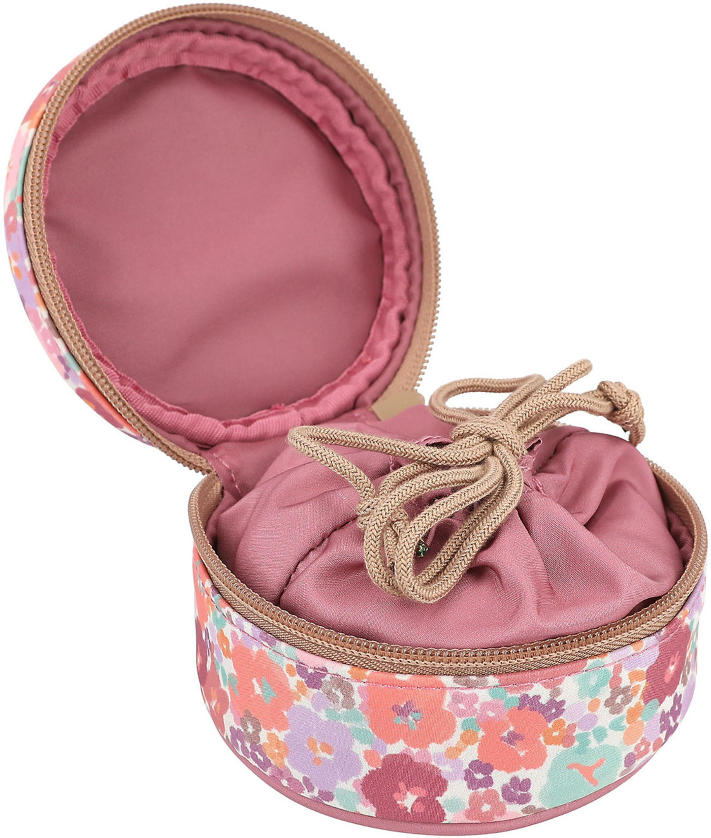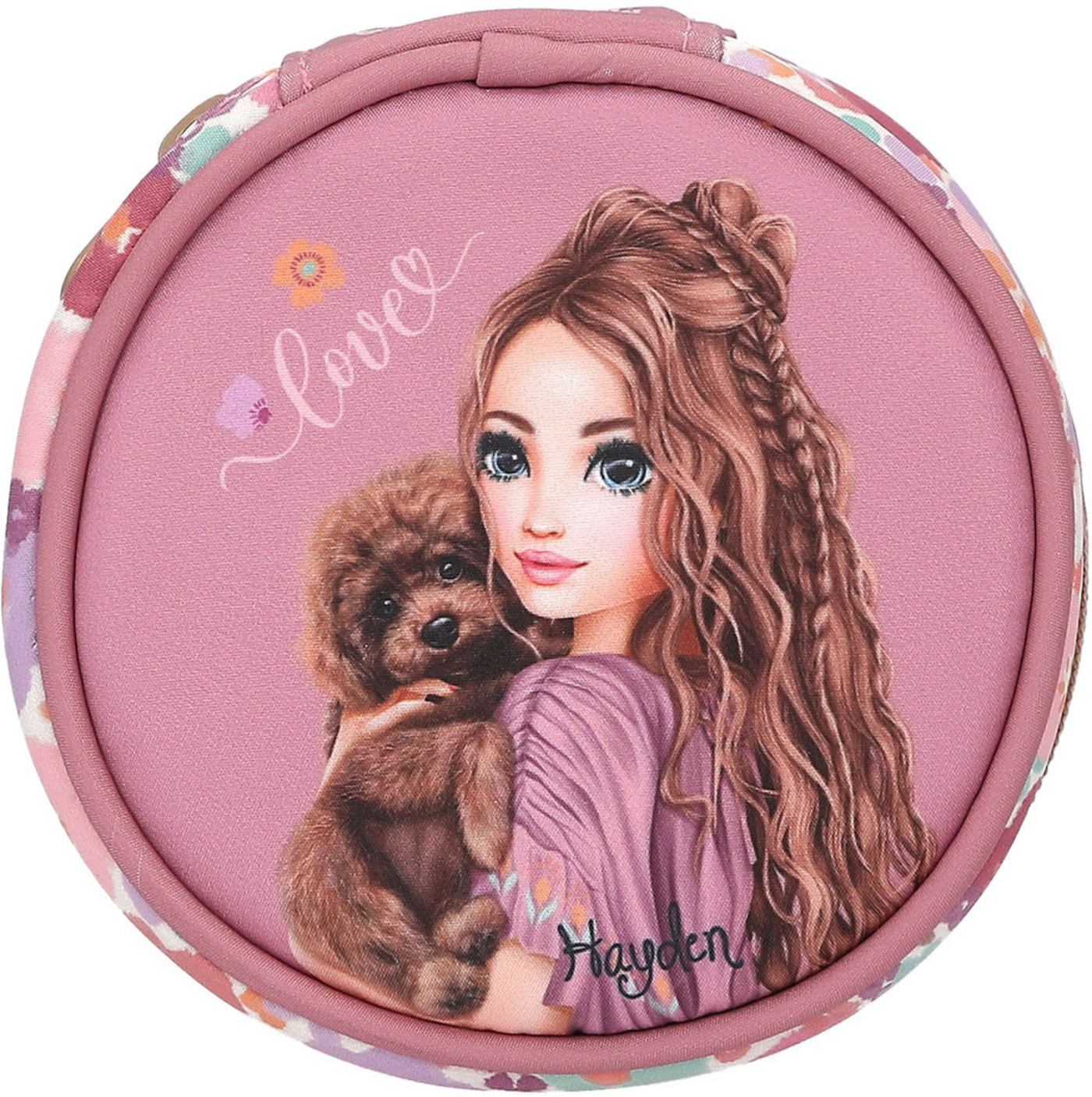 Fantastisch Floral: Das runde Schmuckkästchen aus der neuen TOPModel-Designserie hat auf der beerenfarbenen Front ein stylishes Model-Motiv mit einem supersüßen Hund. Der untere Teil ist aus farblich passendem, samtigen Stoff mit angesagter Rauten-Steppung. Außen mit Reißverschluss und innen mit Zugband zu schließen.