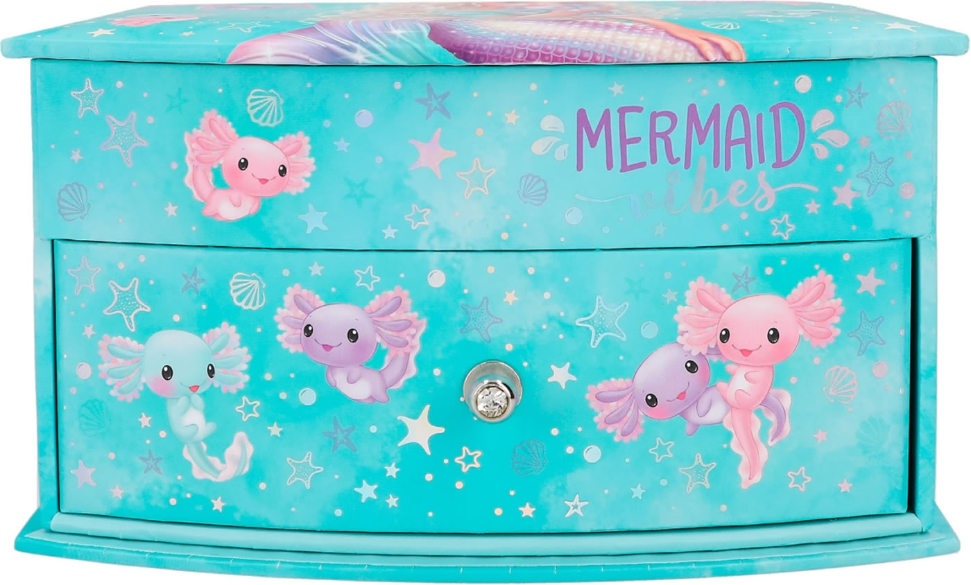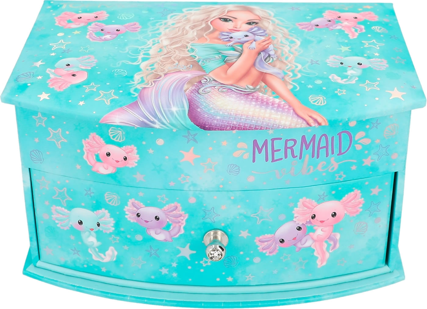 Das kleine Schmuckkästchen versprüht echte Meerjungfrauen-Magie: in strahlendem Türkis, mit fantastischem TOPModel-Motiv und niedlichen Axolotl.