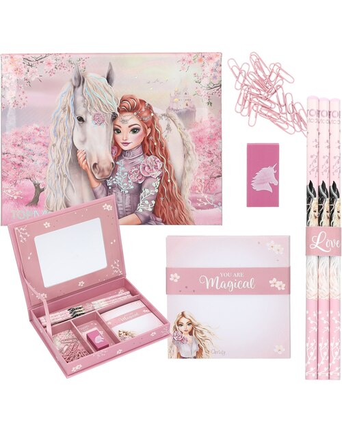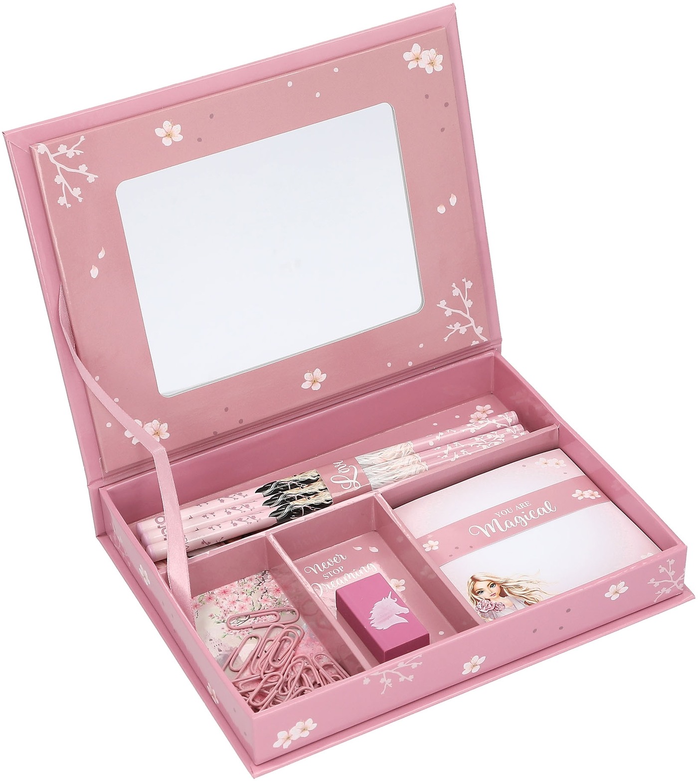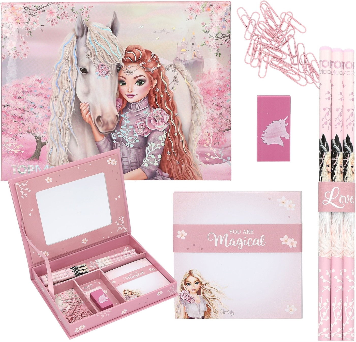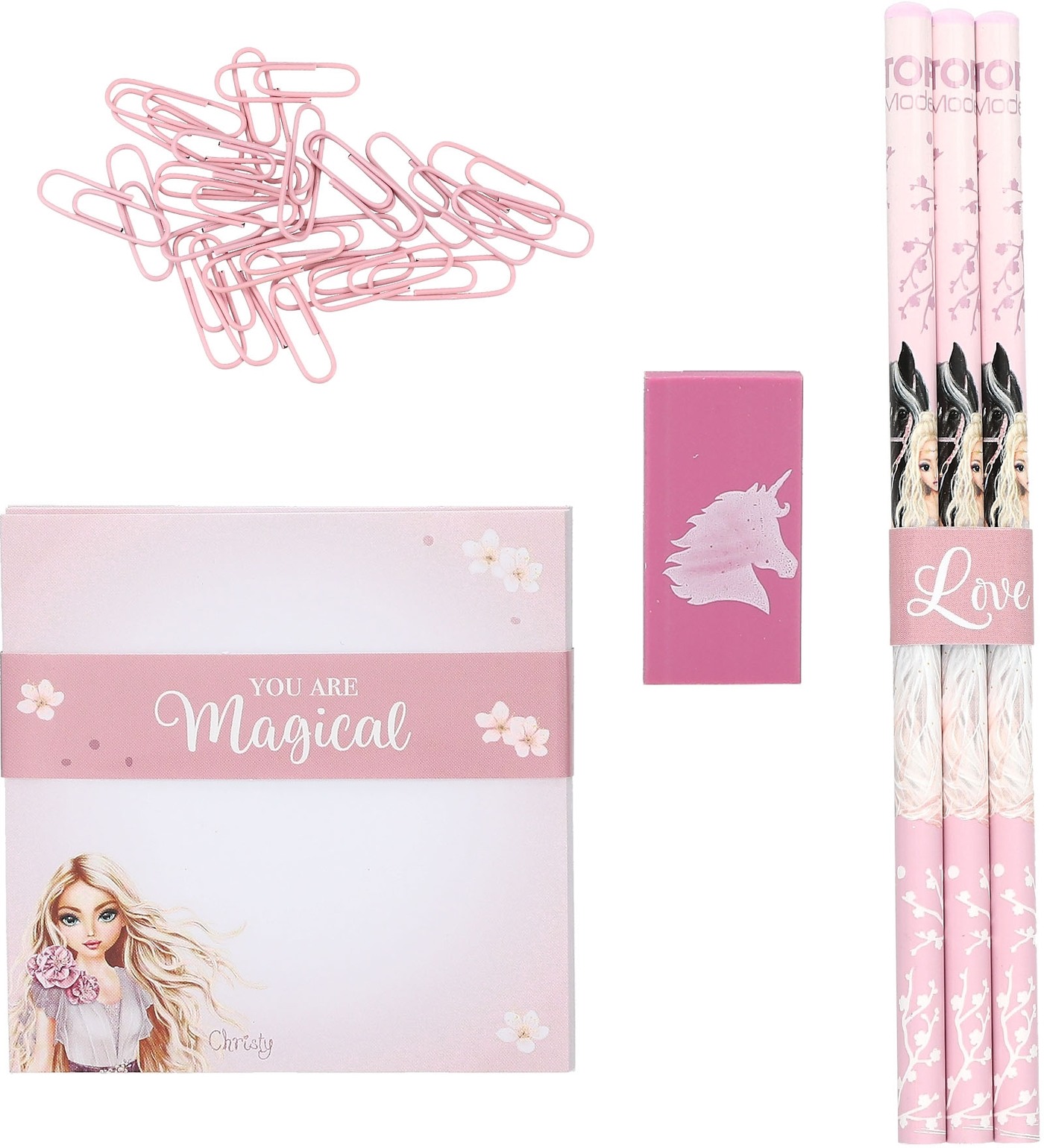 Alles für den Schreibtisch: Zur Schreibwarenbox von TOPModel gehören 3 bunte Bleistifte mit Model-Motiven,