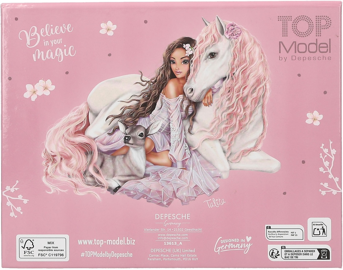 Die Box selber ist märchenhaft schön: sanftes Rosa, ein wunderschönes Model-Motiv mit Pferd,