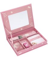 zarte Blüten und Bäume und ein weißes Schloss im Hintergrund. Im Klappdeckel innen befindet sich ein Spiegel.