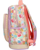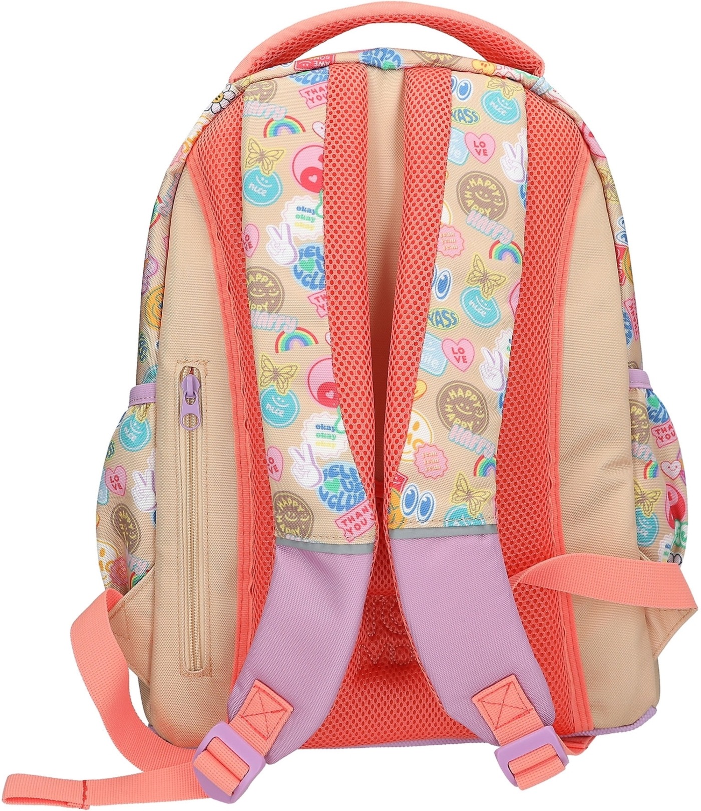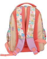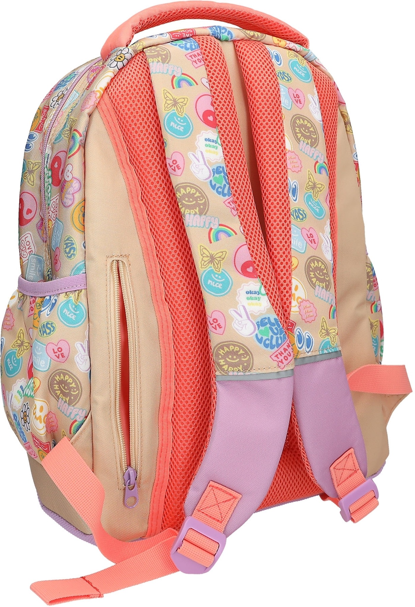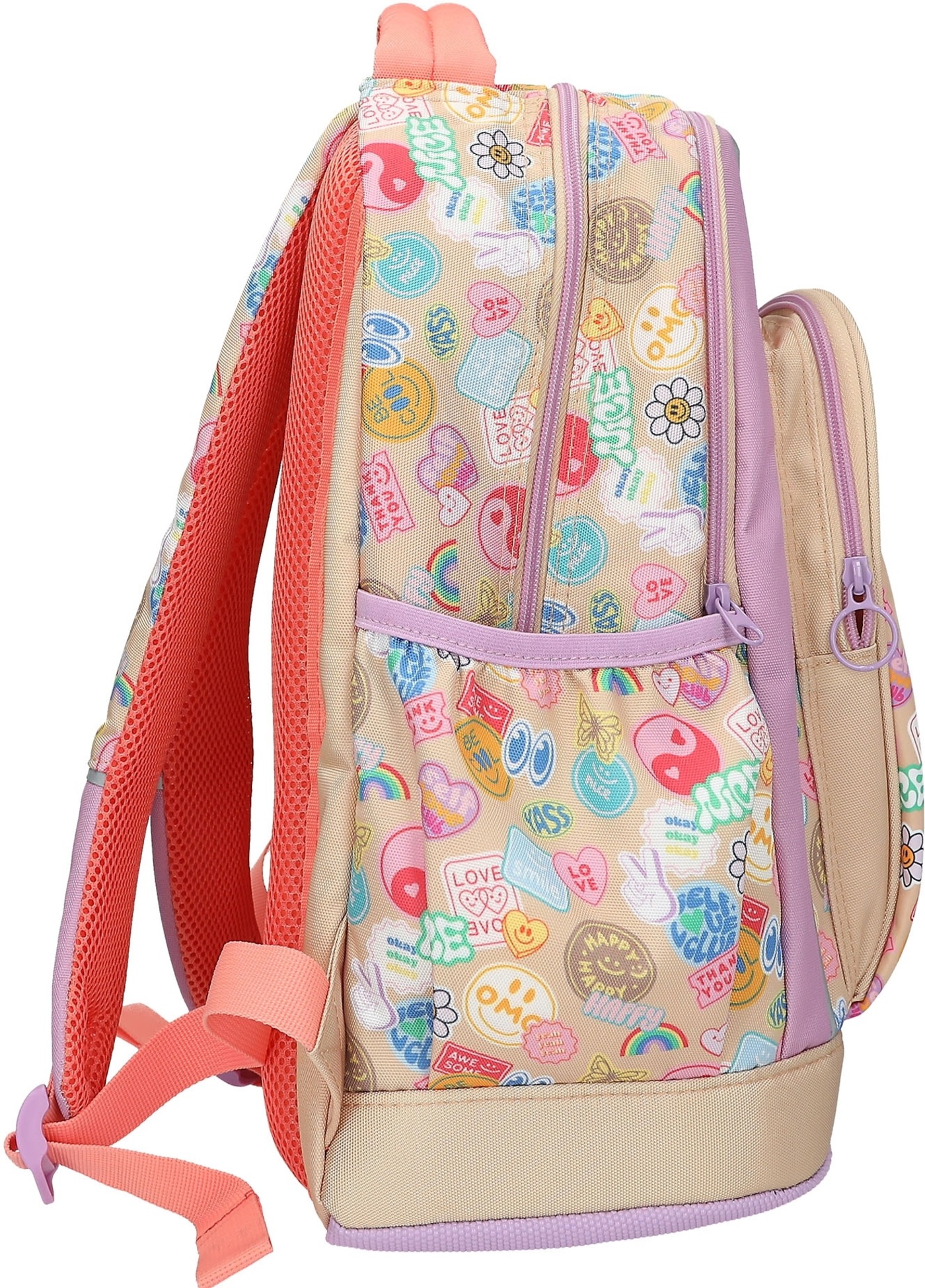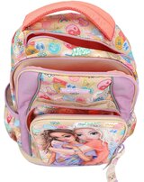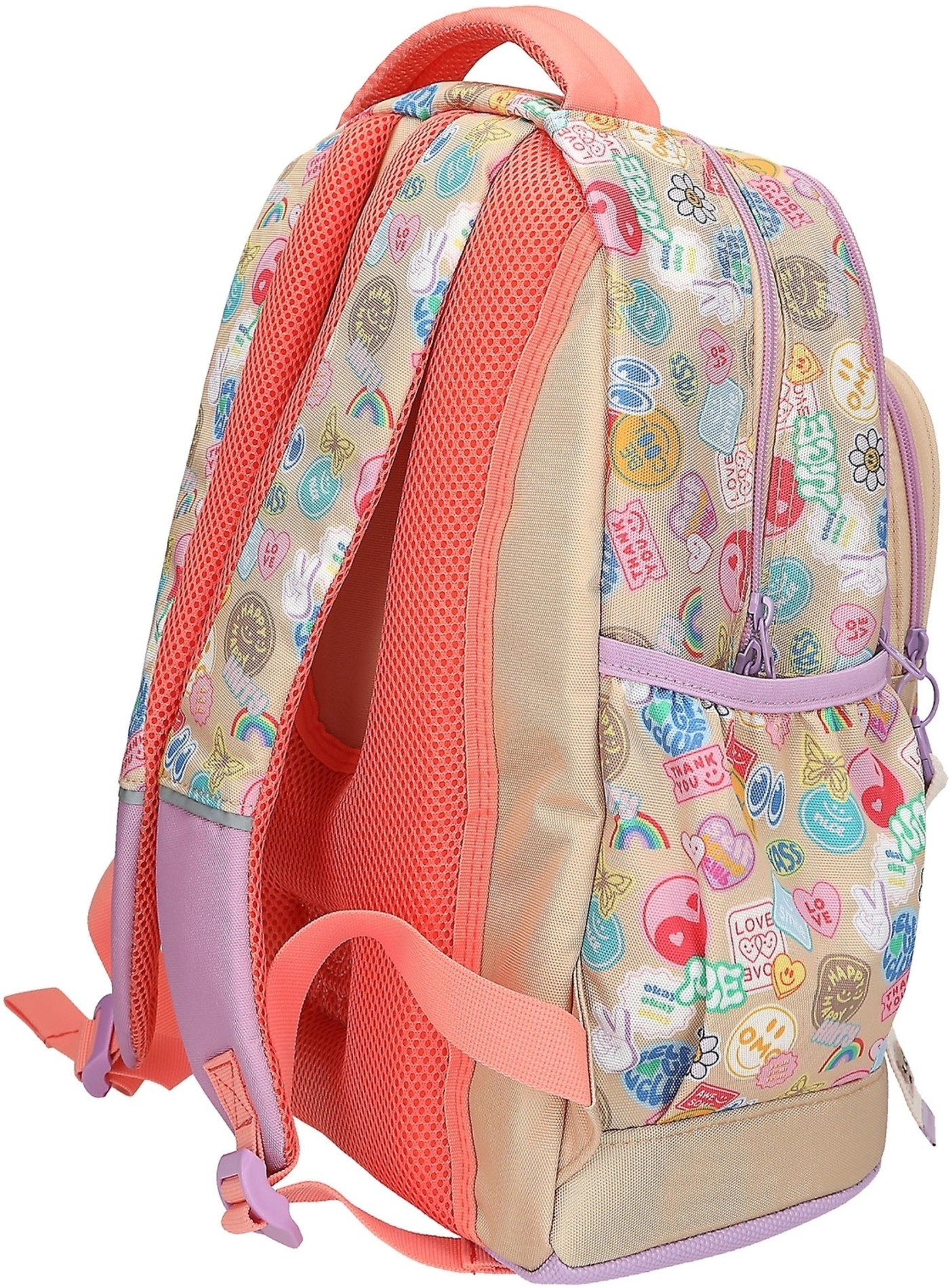 Batch-Boom! Der TOPModel-Schulrucksack in tollem Beige, Flieder und Koralle hat ein tolles Doppel-Modelmotiv und coole bunte Batch-Prints auf der Front,