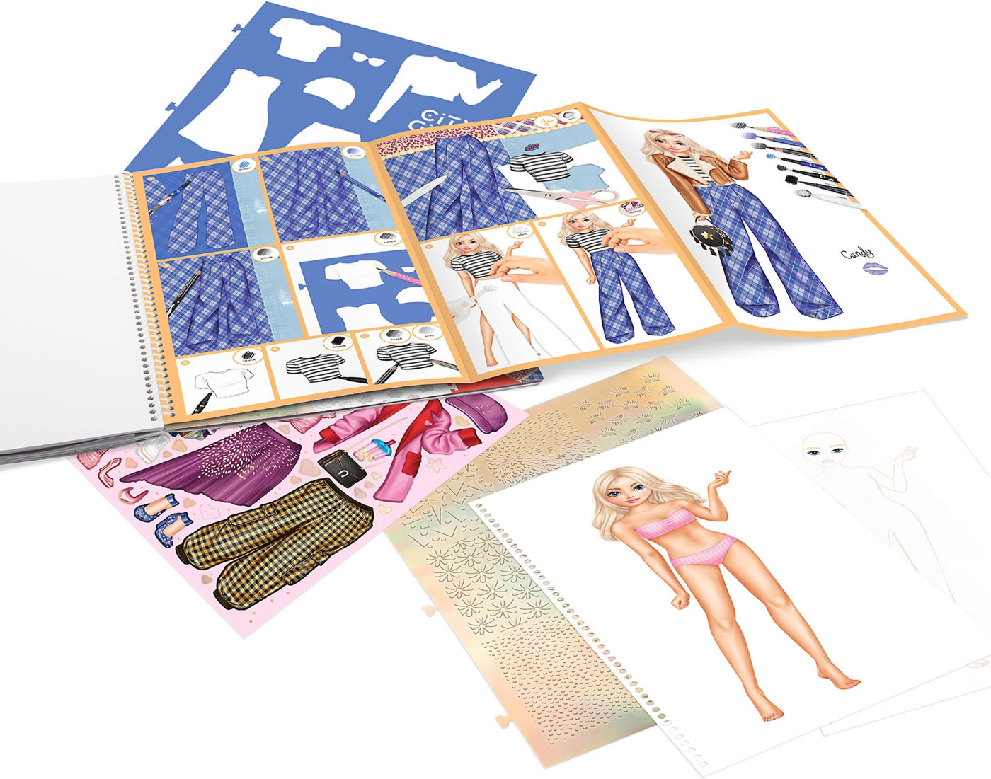 Designen wie ein Mode-Profi: Im Special Design Book von TOPModel kann man für 33 Model-Figurinen stylishe Outfits kreieren. Dafür sind 4 Seiten Design-Papier, 1 Schablone mit Kleidungs- und Accessoire-Umrissen, 1 Präge-Schablone zum Schraffieren sowie 1 Stickerbogen mit dabei. Außerdem im Buch: 4 anschauliche Mal- und Design-Anleitungen für coole Looks.