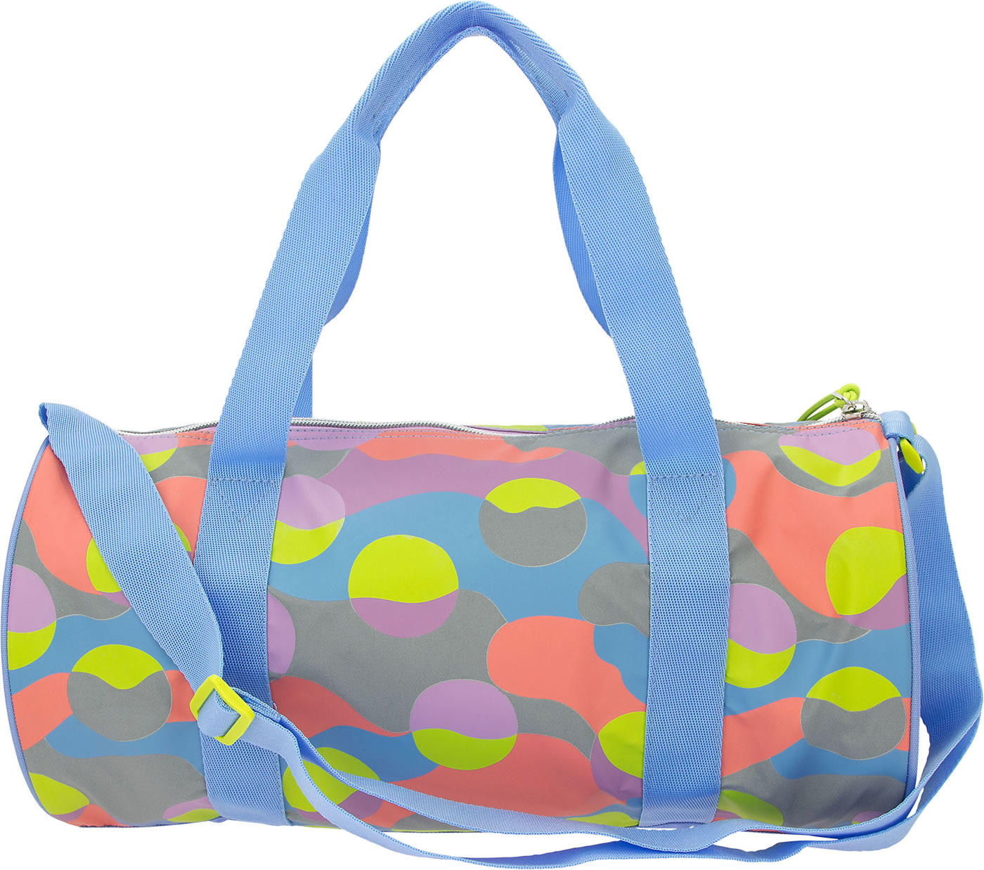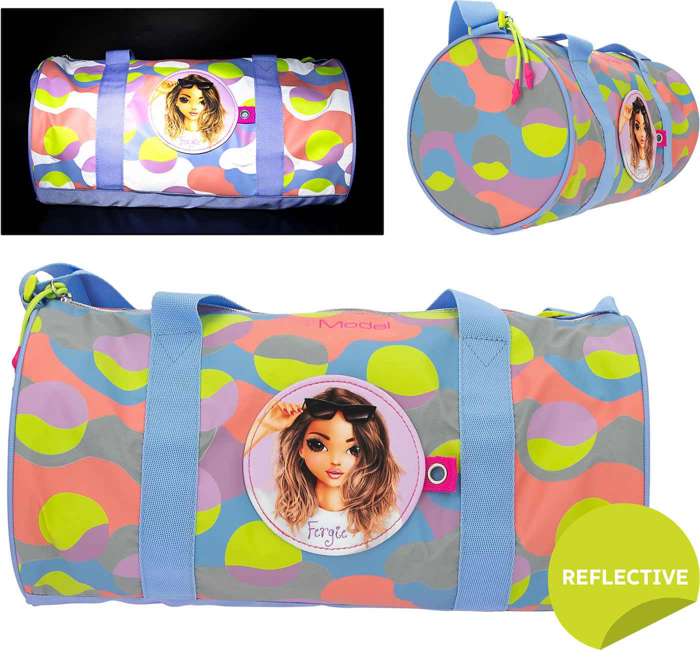 Knallig cool: Die TOPModel-Sporttasche hat rundherum ein angesagtes buntes, grafisches Muster komplett aus Reflektormaterial. Mit appliziertem TOPModel-Patch, tollen Details in Neon-Farben, in der Länge verstellbarem Schultergurt, kurzen Tragegriffen und einer Innentasche mit Reißverschluss.