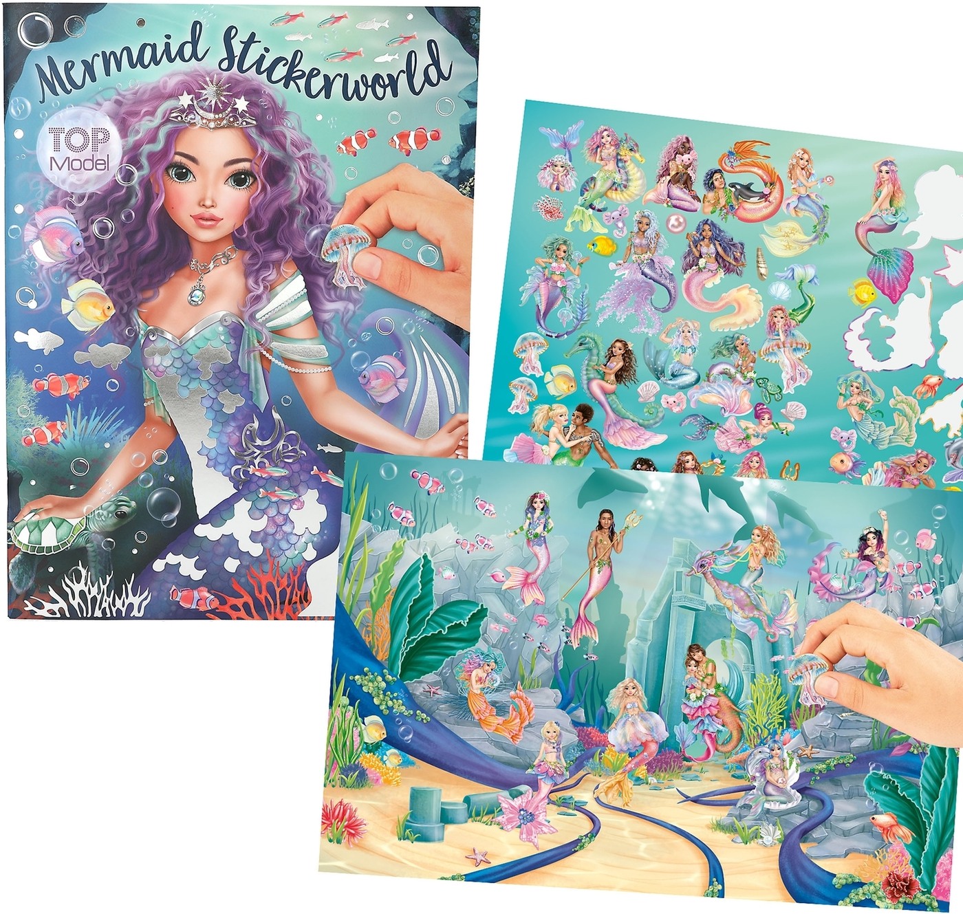 TOPModel Mermaid Stickerworld: 26 magisch schön illustrierte Hintergrund-Seiten und 4 Bogen voller zauberhafter Sticker aus der glitzernden Welt der Meerjungfrauen. Mit tollen silbernen Metallic-Effekten auf dem Cover und auf vielen Stickern.