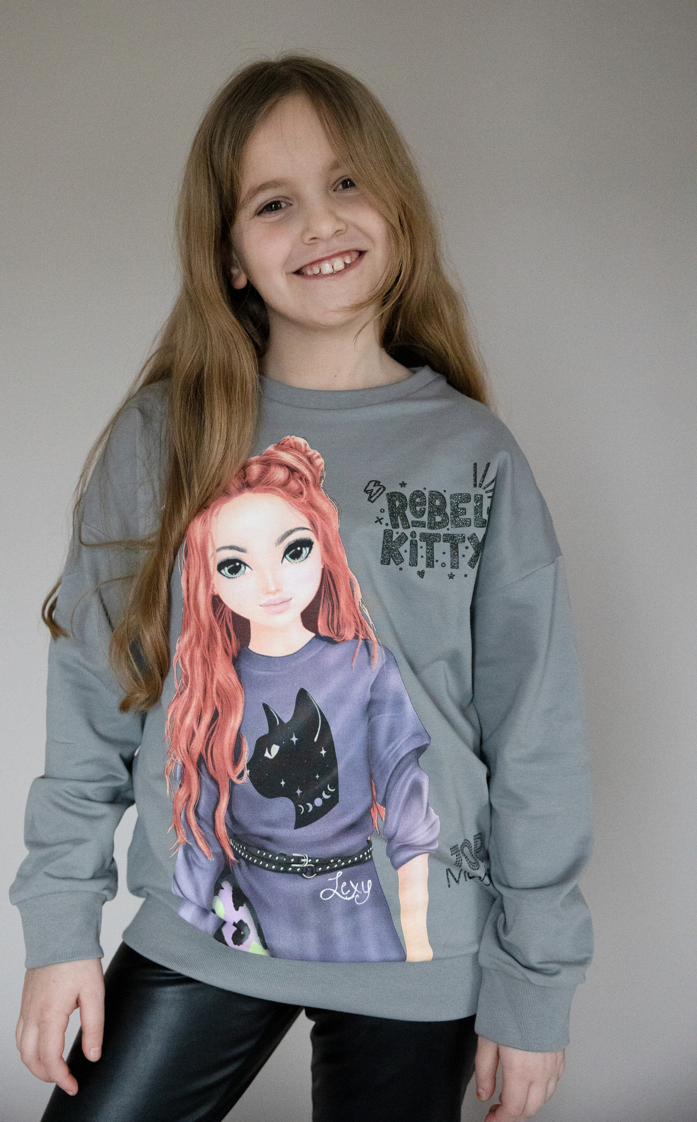 Auf diesem Sweatshirt ist ein hübsches Motiv von Model Lexy gedruckt.