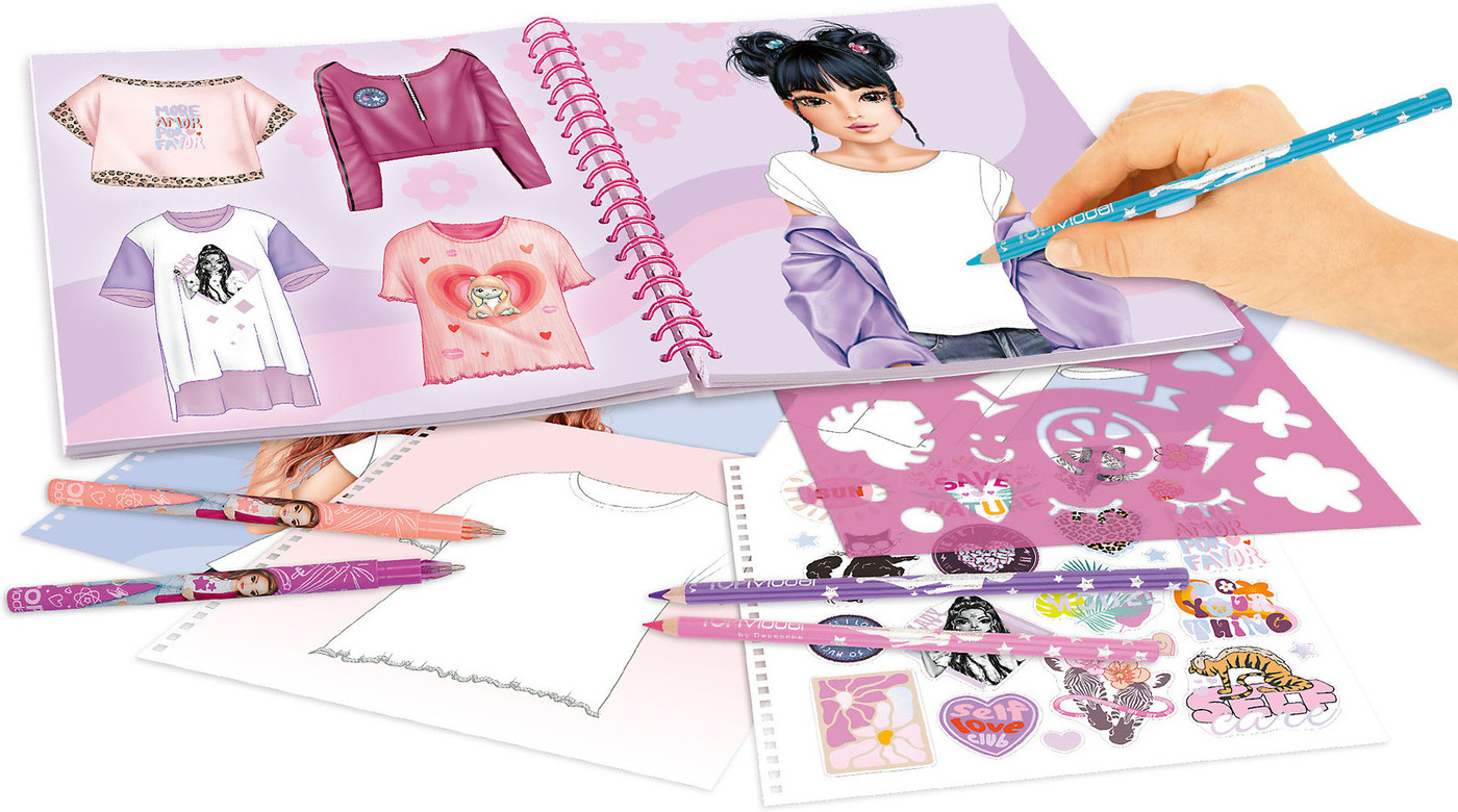 Jeder Look ein Unikat: In dem 60-seitigen Malbuch von TOPModel kann man seine Design-Ideen aufs T-Shirt bringen.