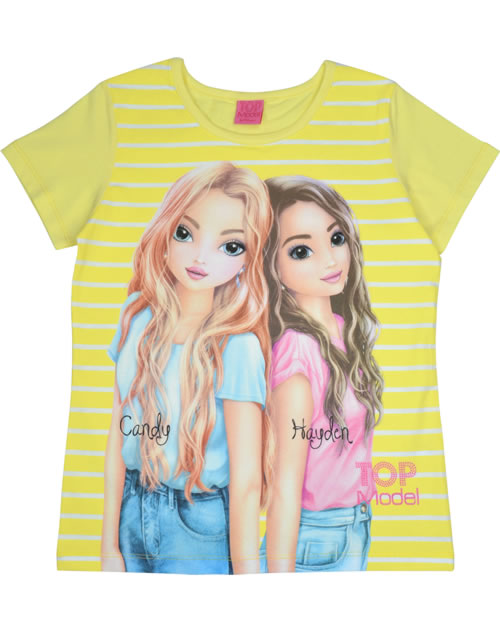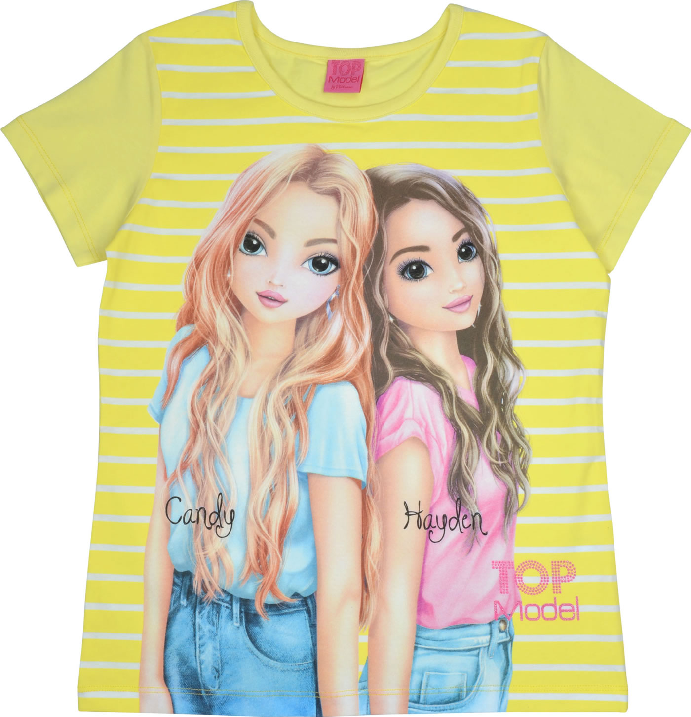 Hübsches Kurzarm T-Shirt in gelb von TOPModel mit dem Model Candy & Hayden auf der Vorderseite. Zusätzlich wird das Shirt von einem glitzernden Print TOPModel geziert. Das angenehme Material bietet einen hohen Tragekomfort.