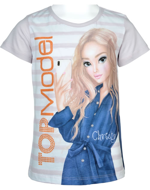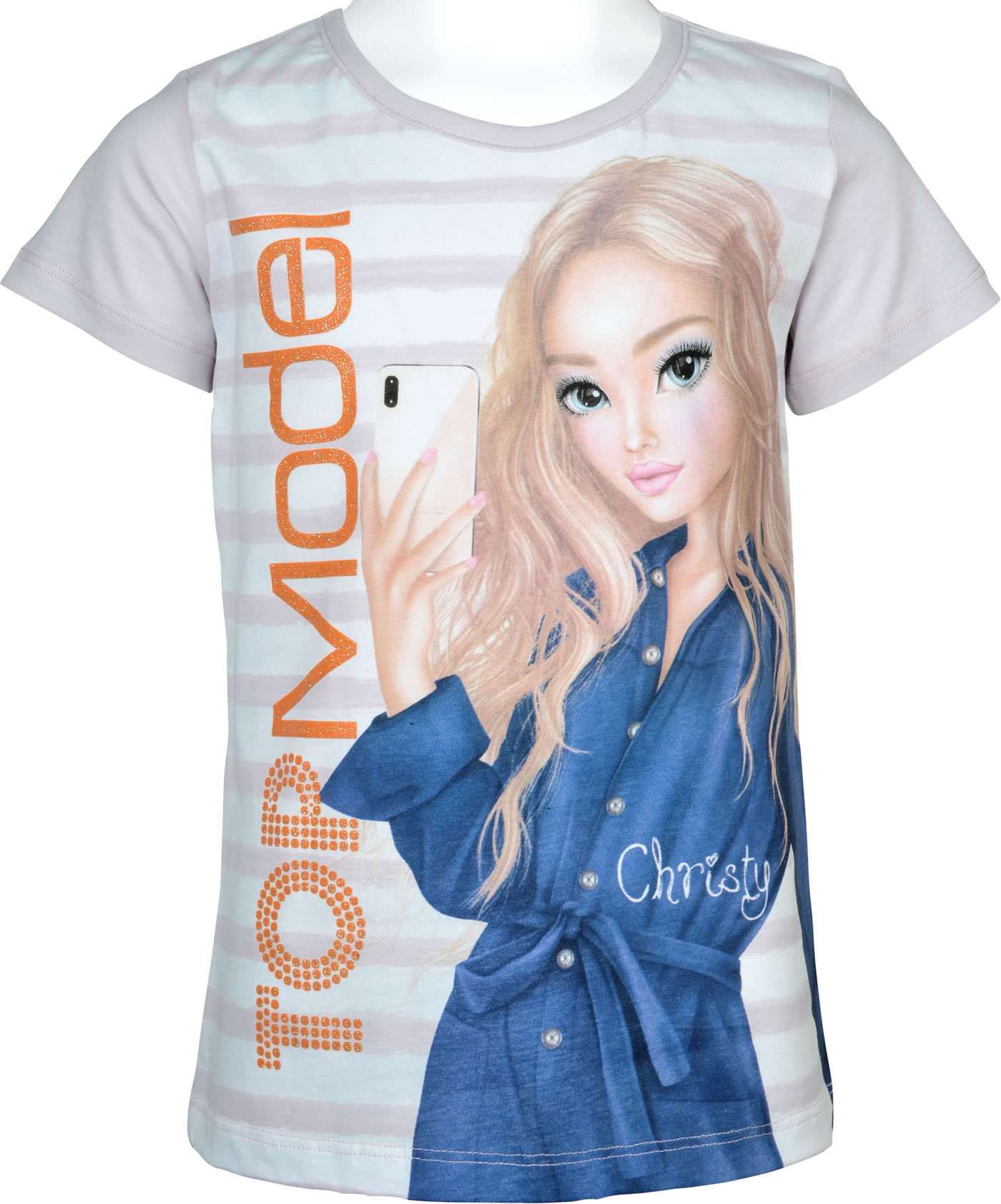 Hübsches Kurzarm T-Shirt mit leichten Streifen in weiß und zartrosé von TOPModel mit dem Model Christy auf der Vorderseite. Zusätzlich wird das Shirt von einem glitzernden TOPModel Print geziert. Das angenehme Material bietet einen hohen Tragekomfort.