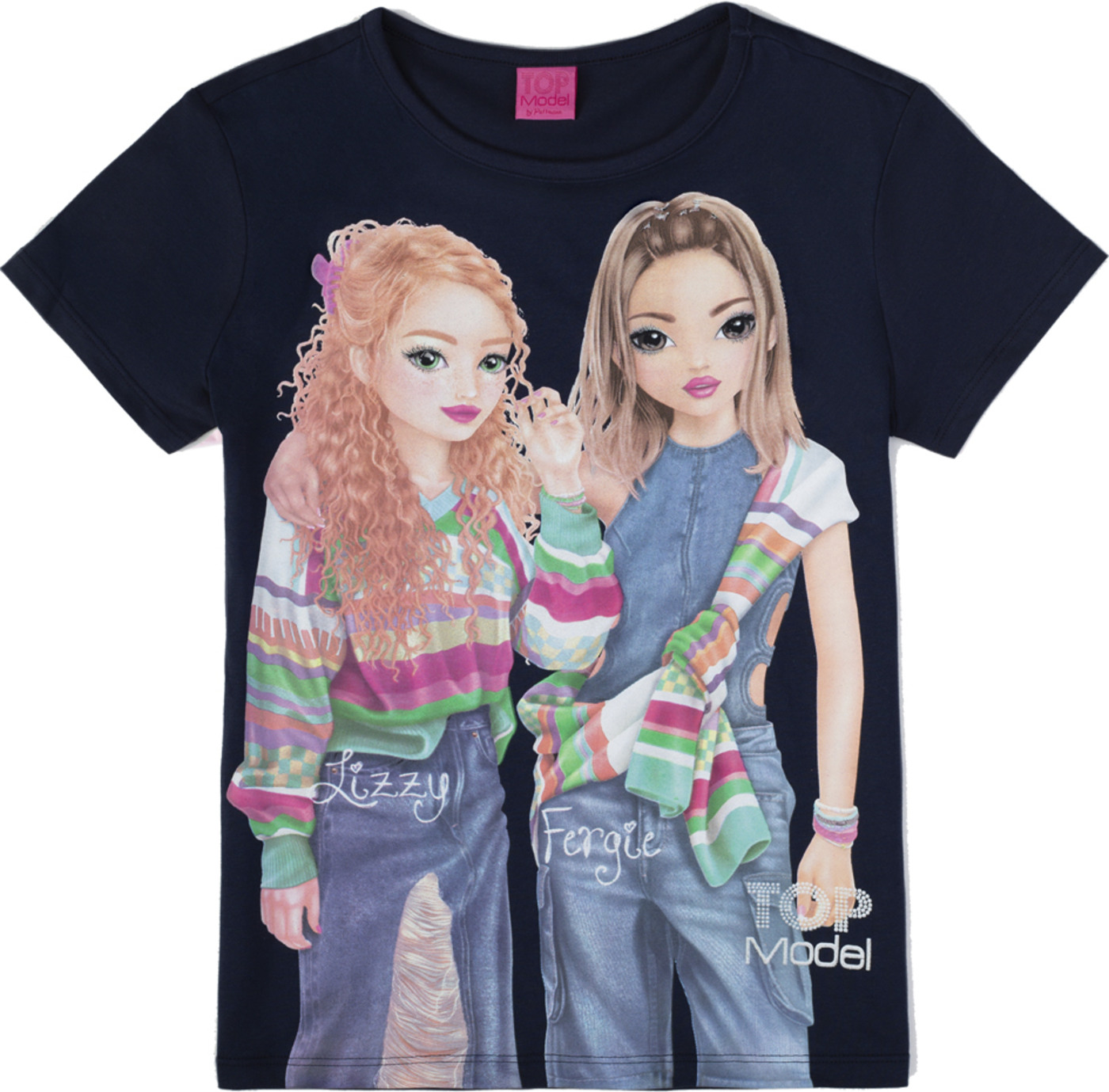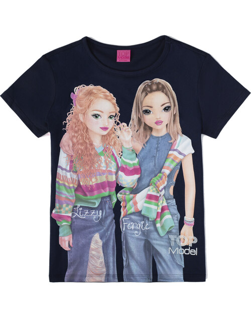 Hübsches Kurzarm T-Shirt in blau von TOPModel mit den Models Lizzy und Fergie auf der Vorderseite.