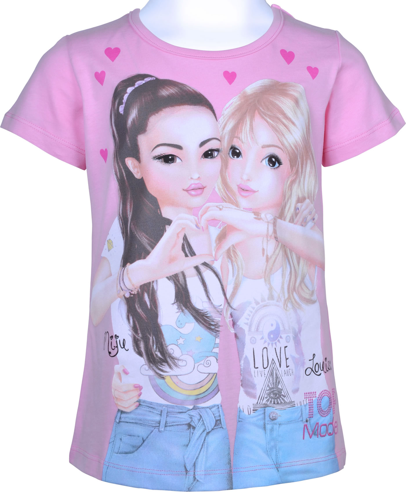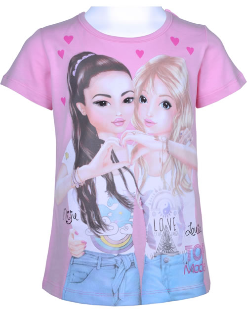 Hübsches Kurzarm T-Shirt in pink von TOPModel mit den Models Miju & Louise auf der Vorderseite. Zusätzlich wird das Shirt mit einem glitzernden TOPModel Print geziert. Das angenehme Material bietet einen hohen Tragekomfort.