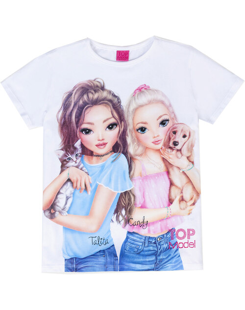 TOPModel T-Shirt Kurzarm TALITA & CANDY Furry Friends aus Baumwolle - Bright White