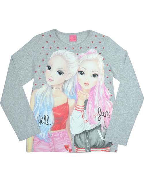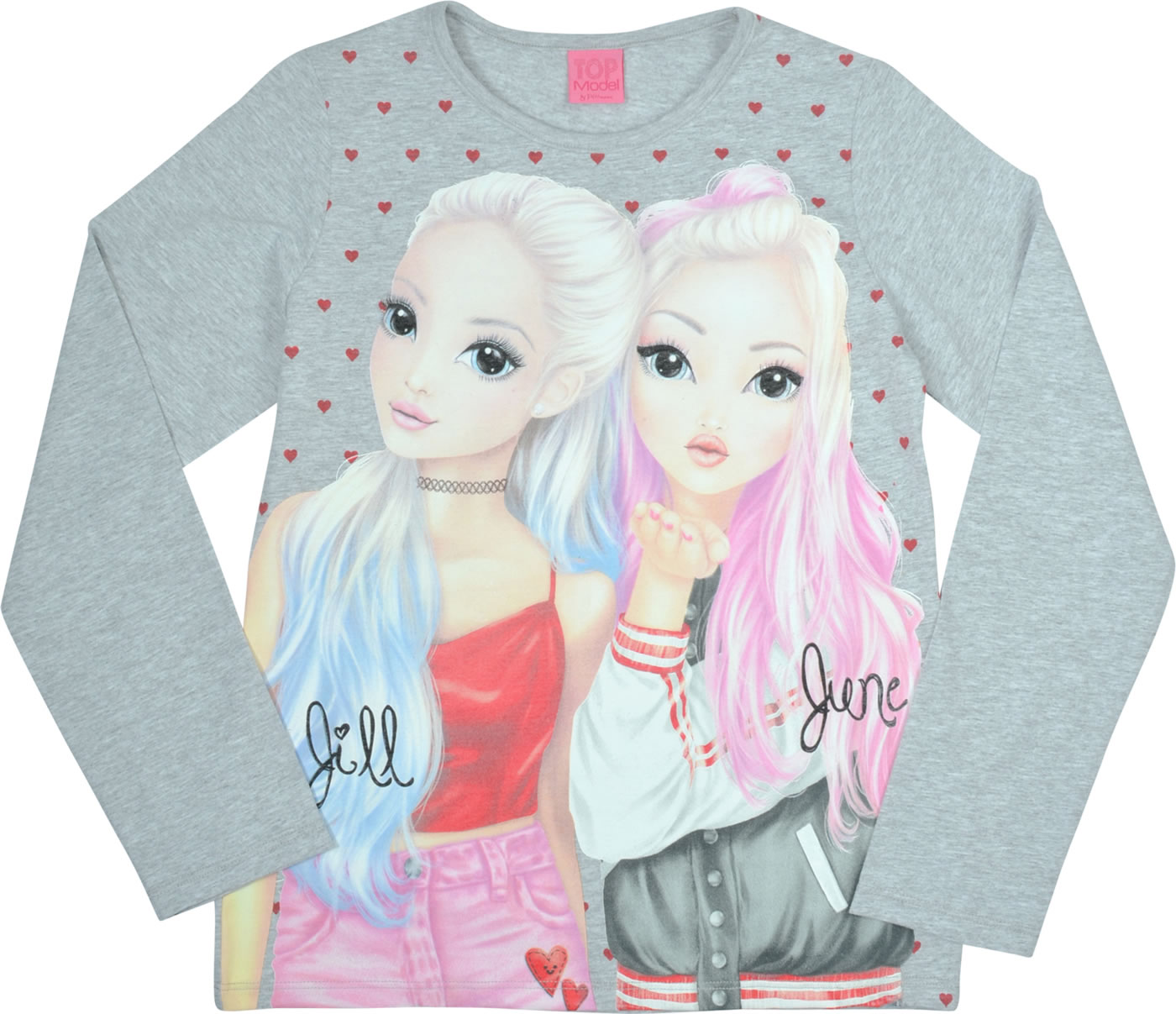 Hübsches Langarm-Shirt in grau von TOPModel mit den Models Jill und June auf der Vorderseite. Das angenehme Material bietet einen hohen Tragekomfort.