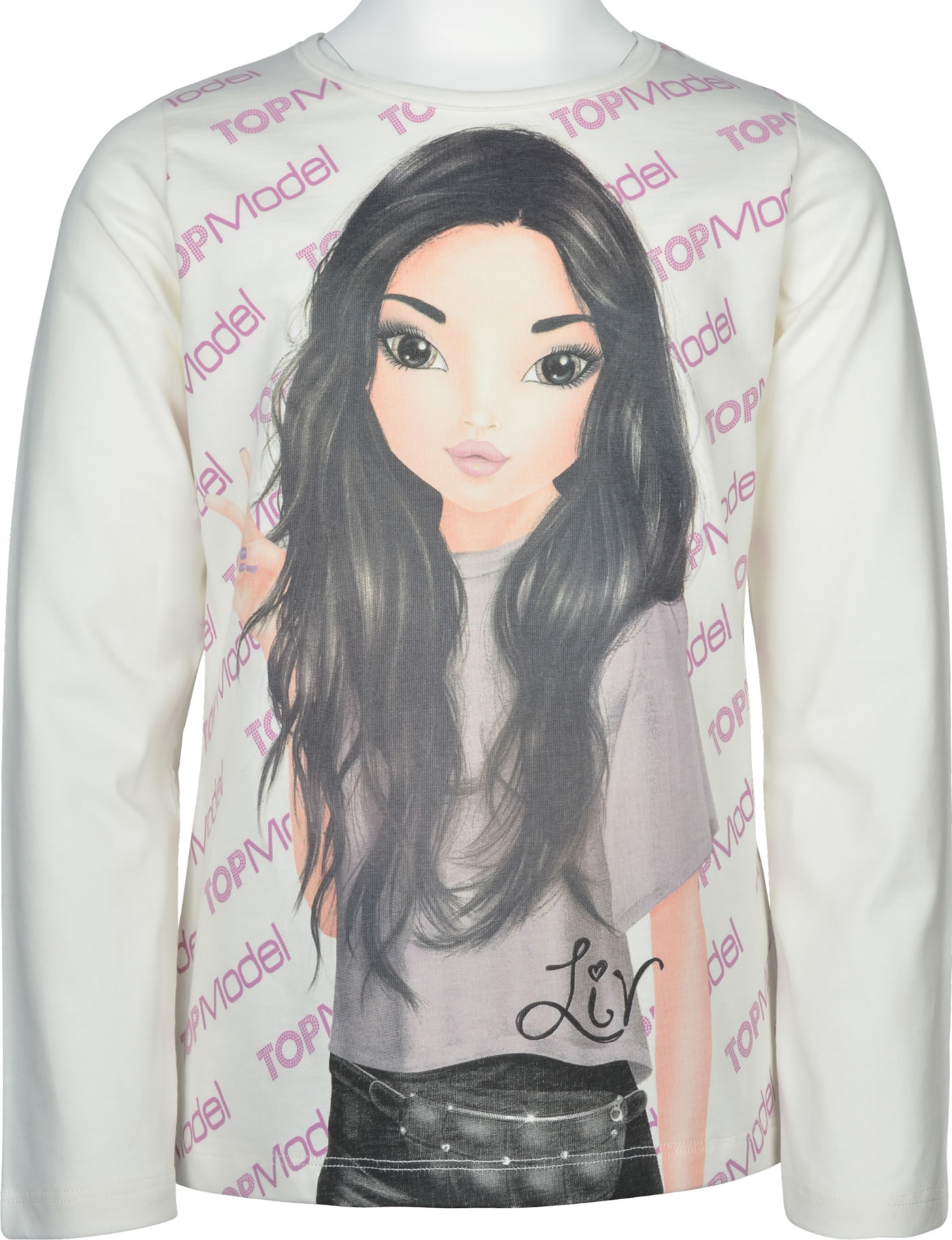 Hübsches Langarm-Shirt in weiß von TOPModel mit dem Model Liv auf der Vorderseite. Zusätzlich wird das Shirt von einem matten Print TOPModel geziert. Das angenehme Material bietet einen hohen Tragekomfort.