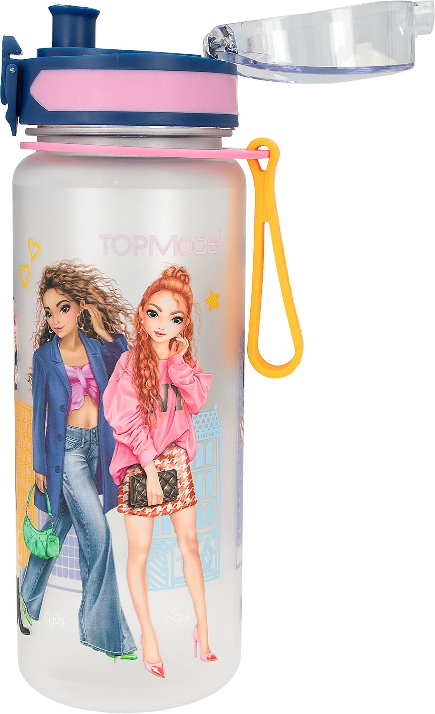 Unterwegs durstig? Die TOPModel-Trinkflasche City Girls mit großem Aufdruck der TOPModels vor einer coolen Skyline fasst 700 ml Flüssigkeit. Mit praktischem und hygienischem Flip-Top-Deckel, der eine einhändige Benutzung möglich macht.