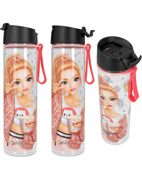 Die große Trinkflasche aus der TOPModel-Serie Cutie Star mit großem Model-Motiv und superniedlichen Katzen-Icons hat einen praktischen Klippverschluss an der Trinköffnung. Aufgrund des Aufdrucks ist das Spülen mit der Hand empfohlen. Nicht geeignet für die Mikrowelle.