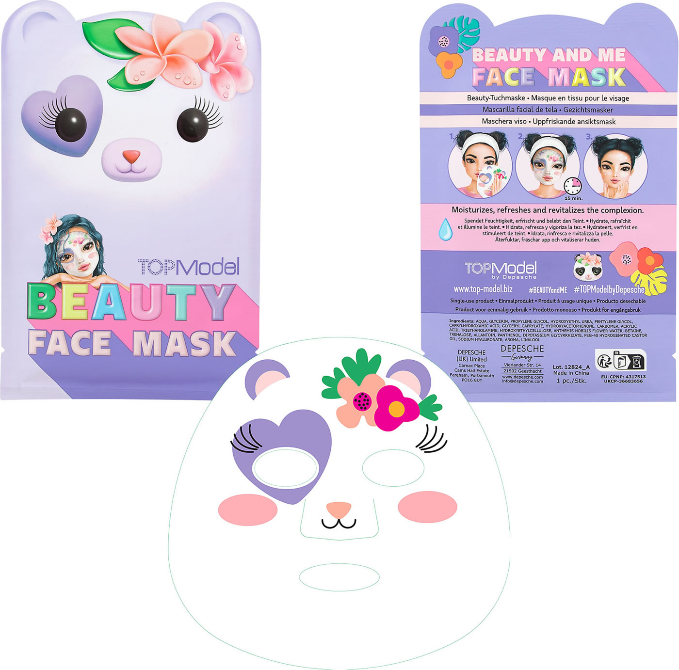Tierisch süß: Die mit einem Bären- oder Panda-Motiv bedruckten kindgerechten TOPModel-Tuchmasken spenden jede Menge Feuchtigkeit. 3 Designs, 1 Maske pro Verpackung.