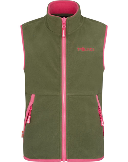 Trollkids Fleece-Weste Zip-In KIDS KJERAG dusky olive/light magenta