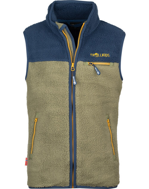 Trollkid Weste Sherpa-Fleece KIDS HEMSEDAL - Moss/Mystic Blue